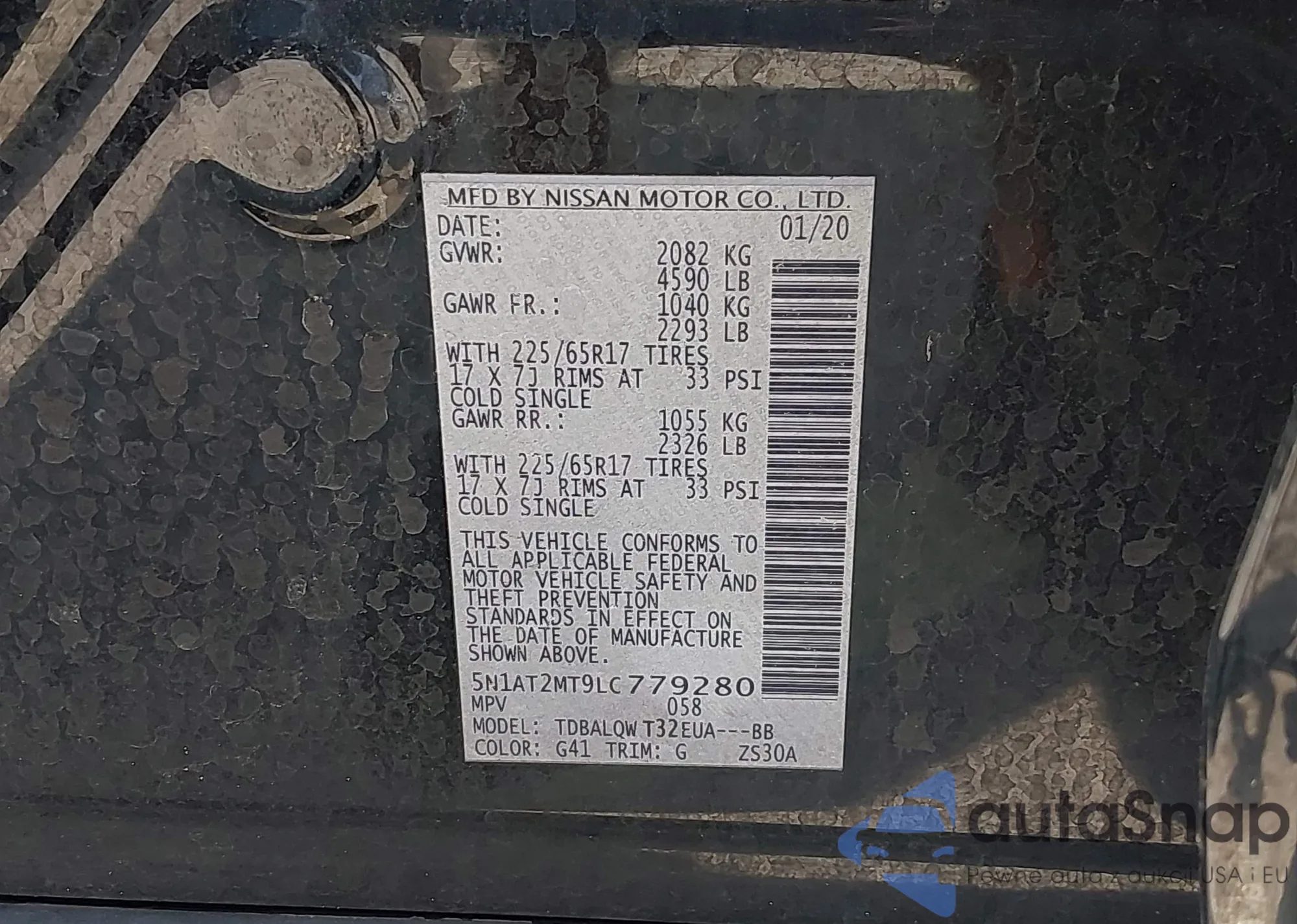 LOT: 43104854 VIN: 5N1AT2MT9LC779280