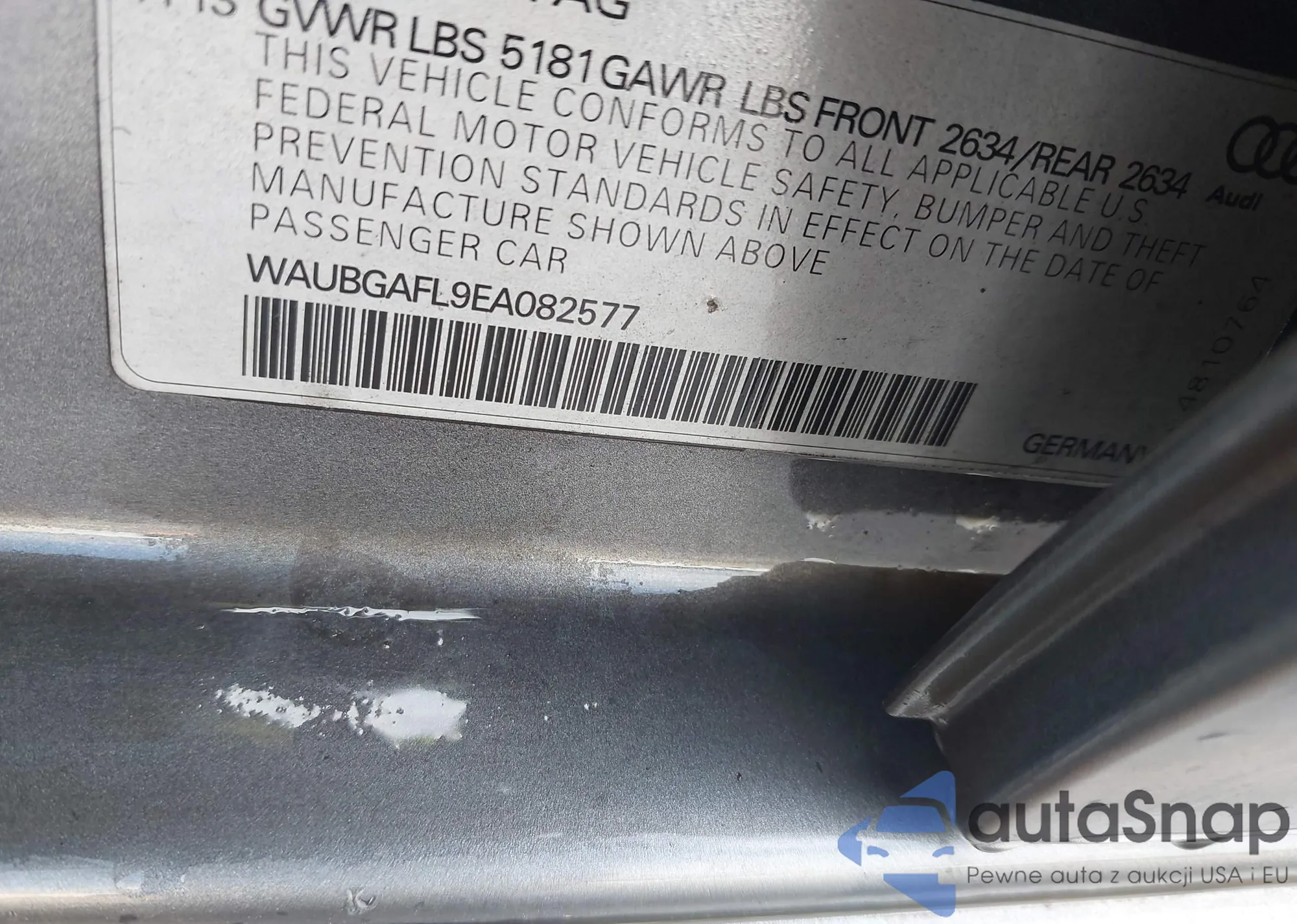 • VIN WAUBGAFL9EA082577
