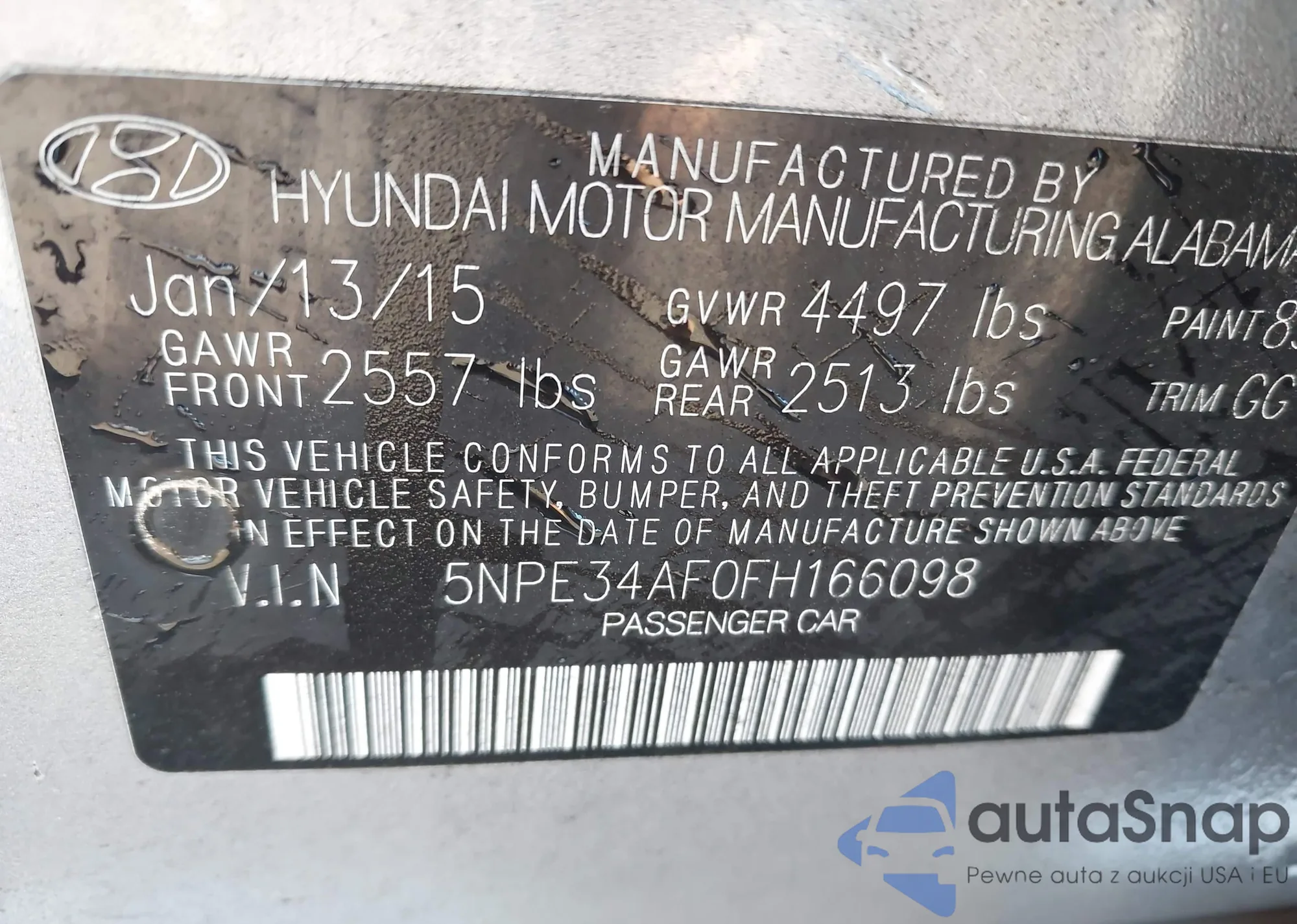 • VIN 5NPE34AF0FH166098