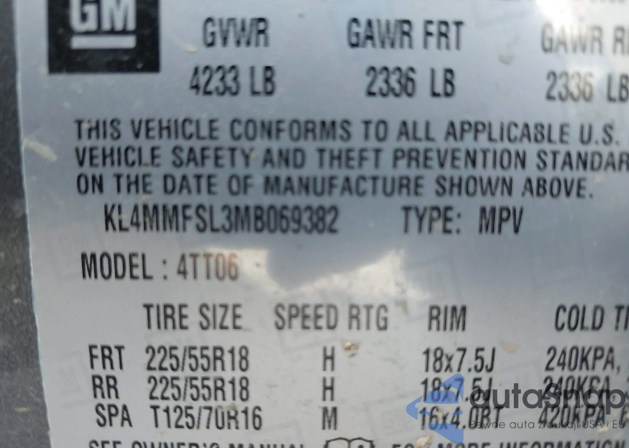 • VIN KL4MMFSL3MB069382
