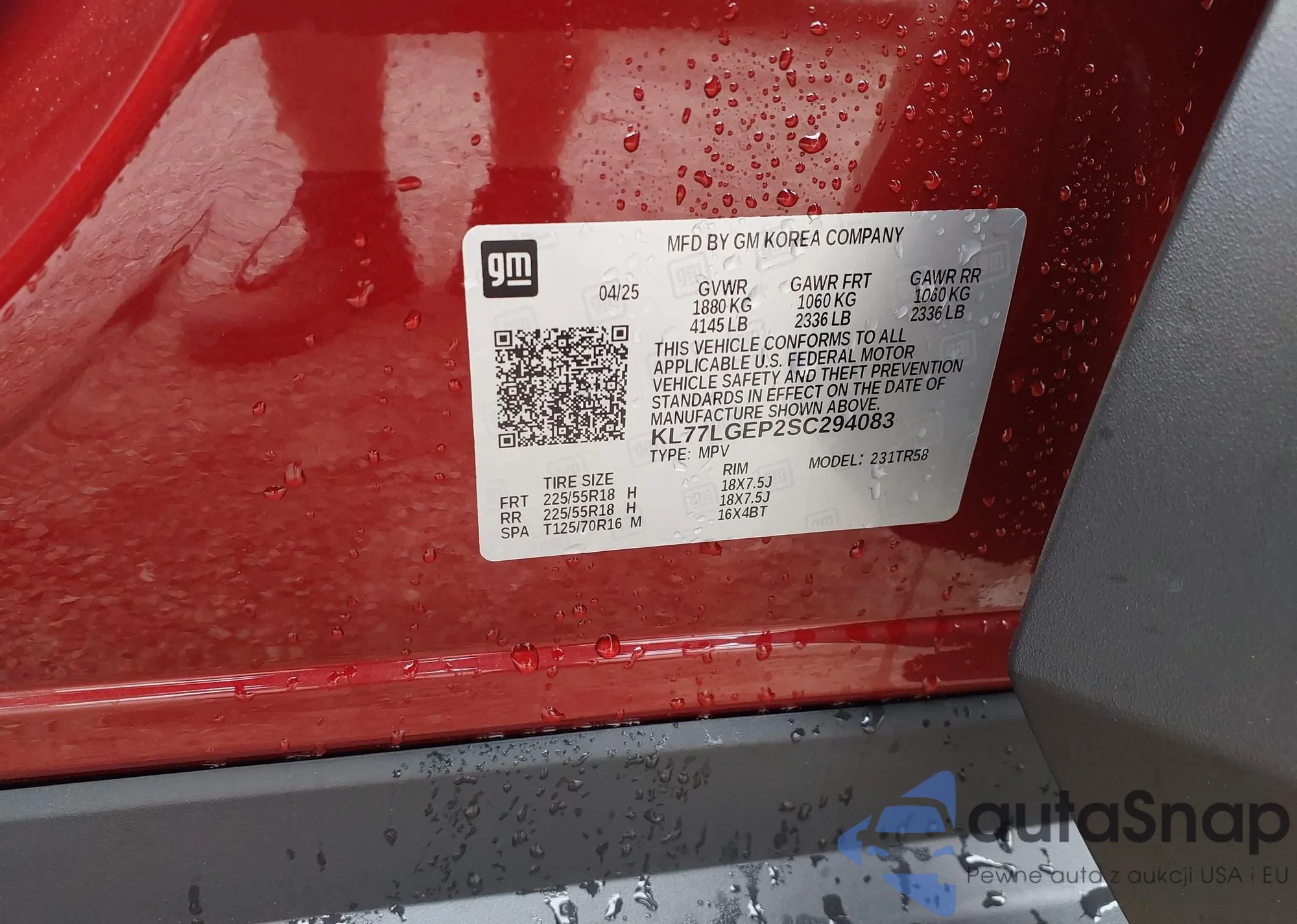 • VIN KL77LGEP2SC294083