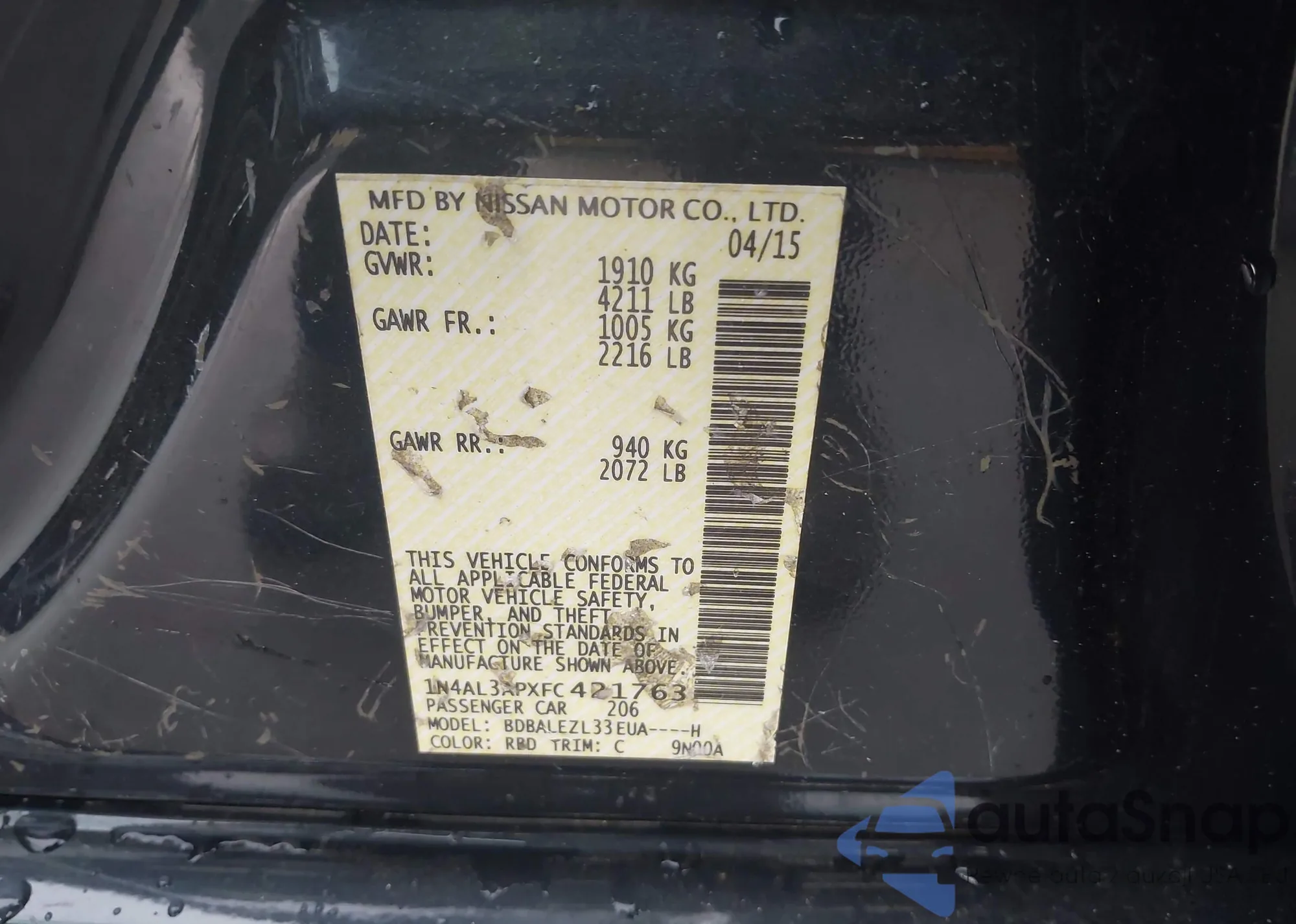 LOT: 42693506 VIN: 1N4AL3APXFC421763