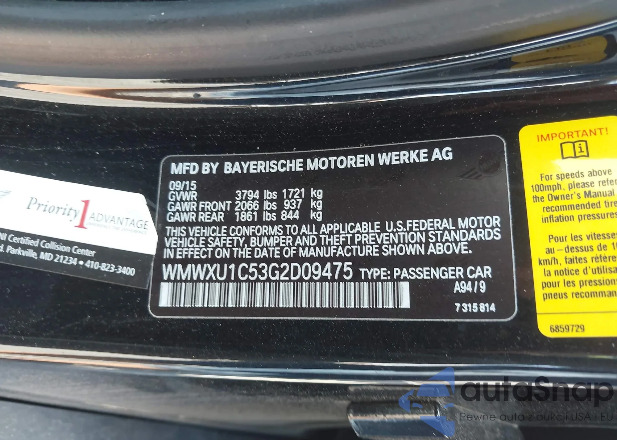 LOT: 42828100 VIN: WMWXU1C53G2D09475