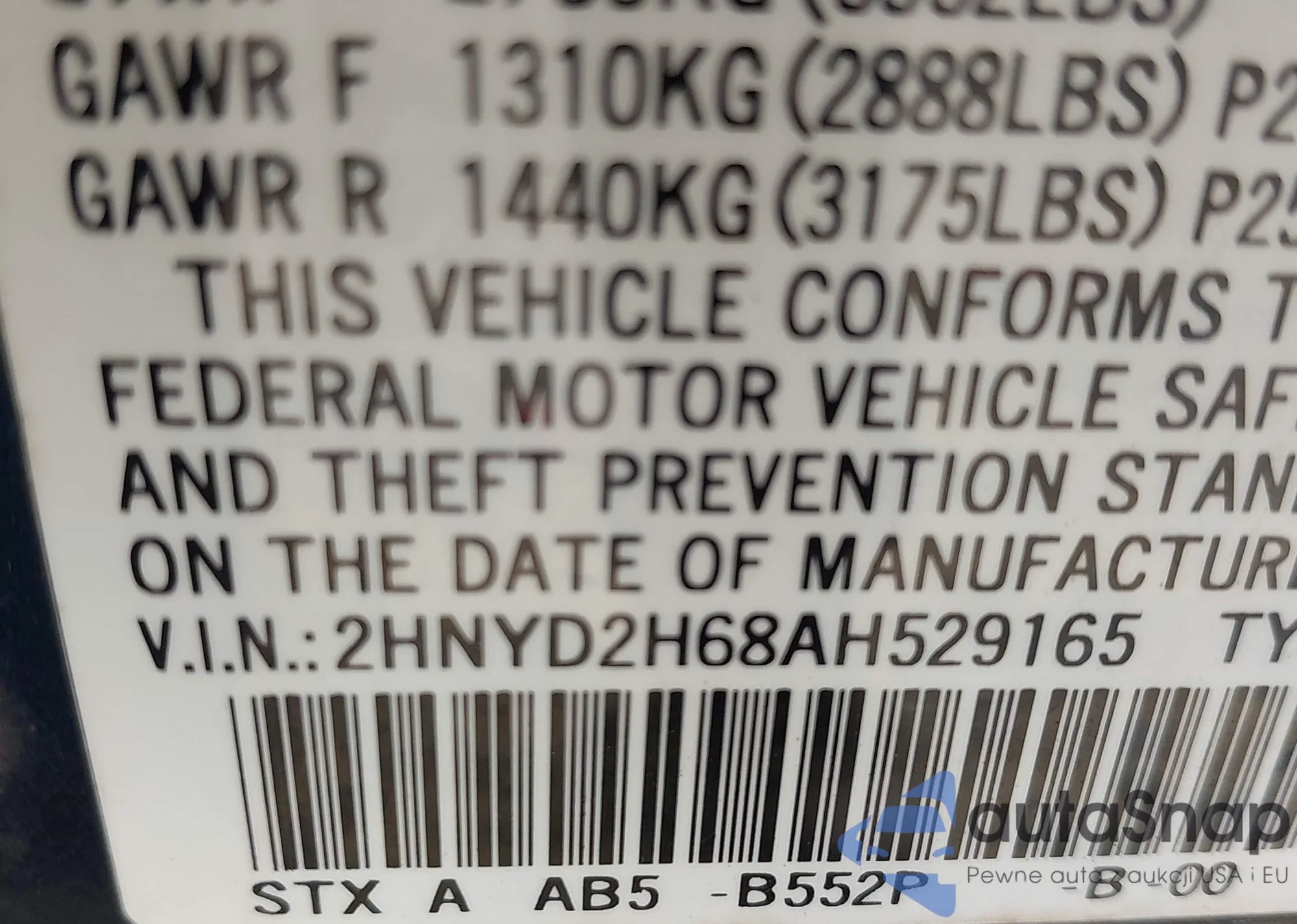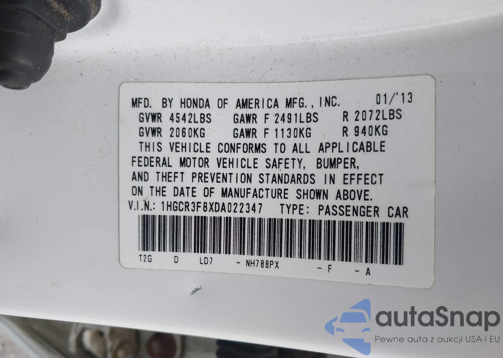 • VIN 1HGCR3F8XDA022347
