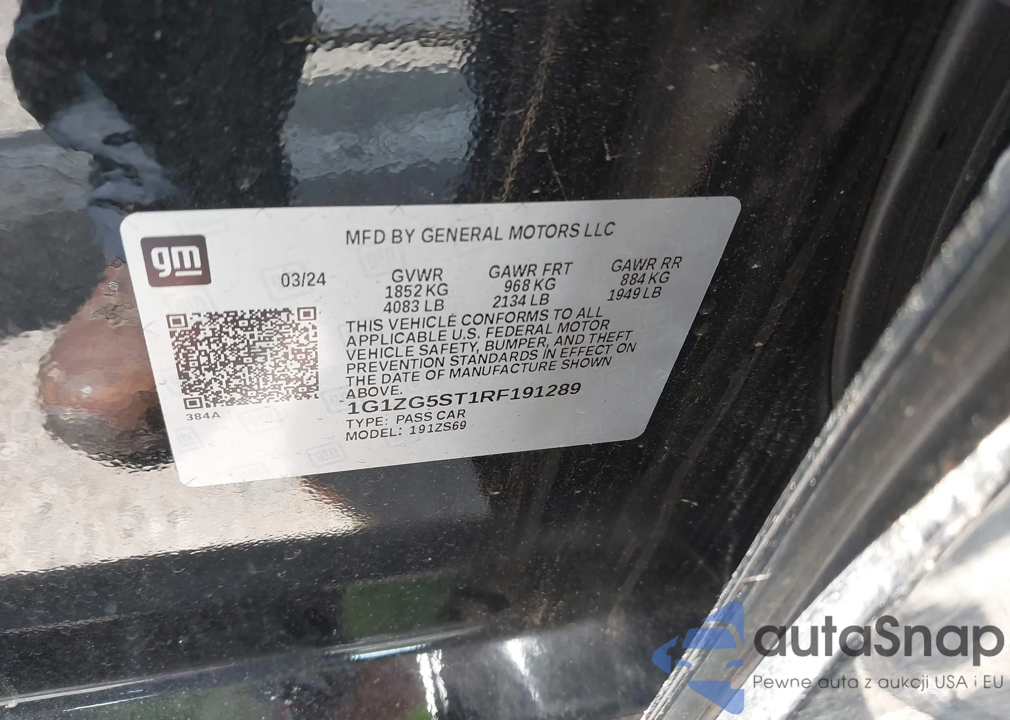 • VIN 1G1ZG5ST1RF191289