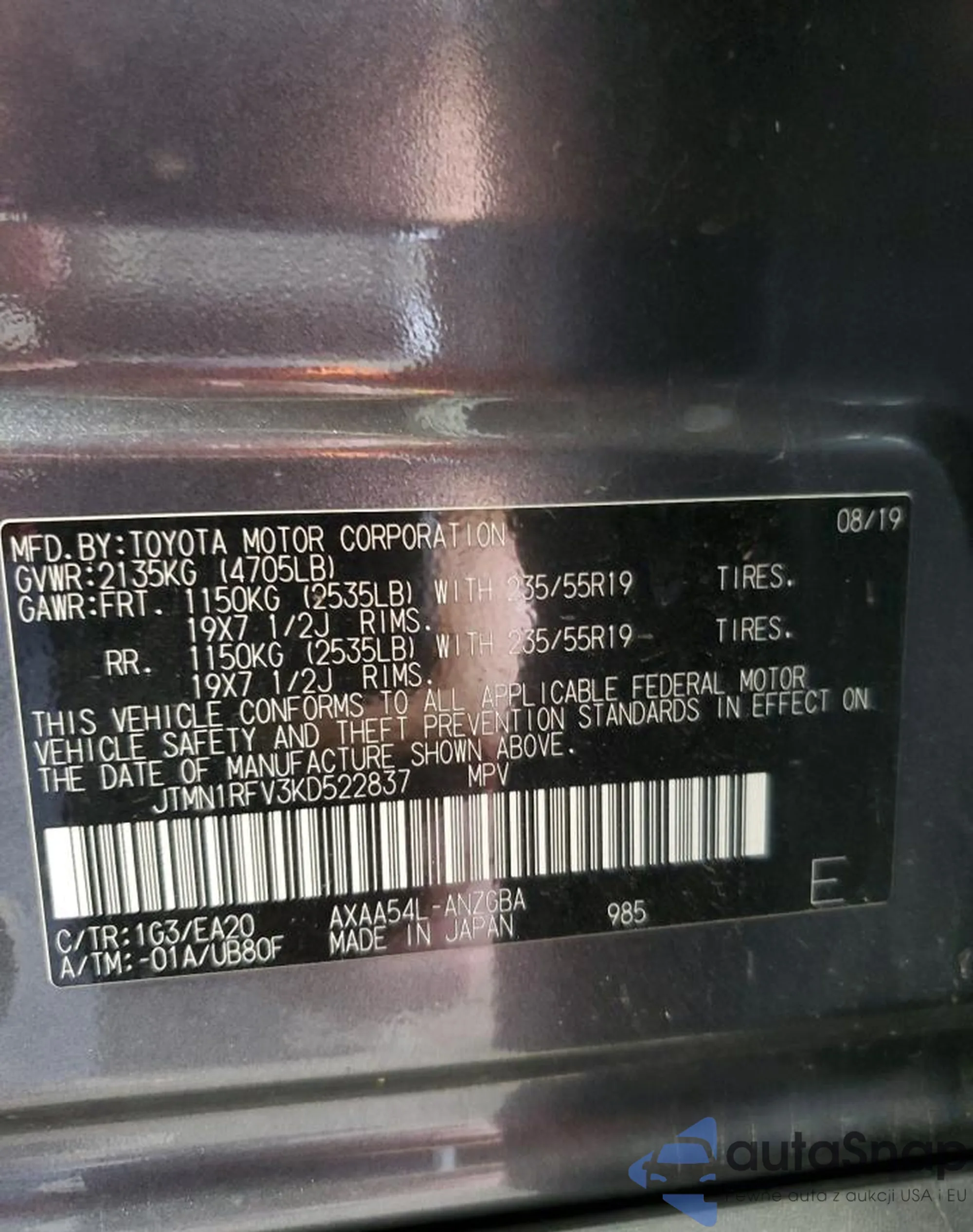• VIN JTMN1RFV3KD522837