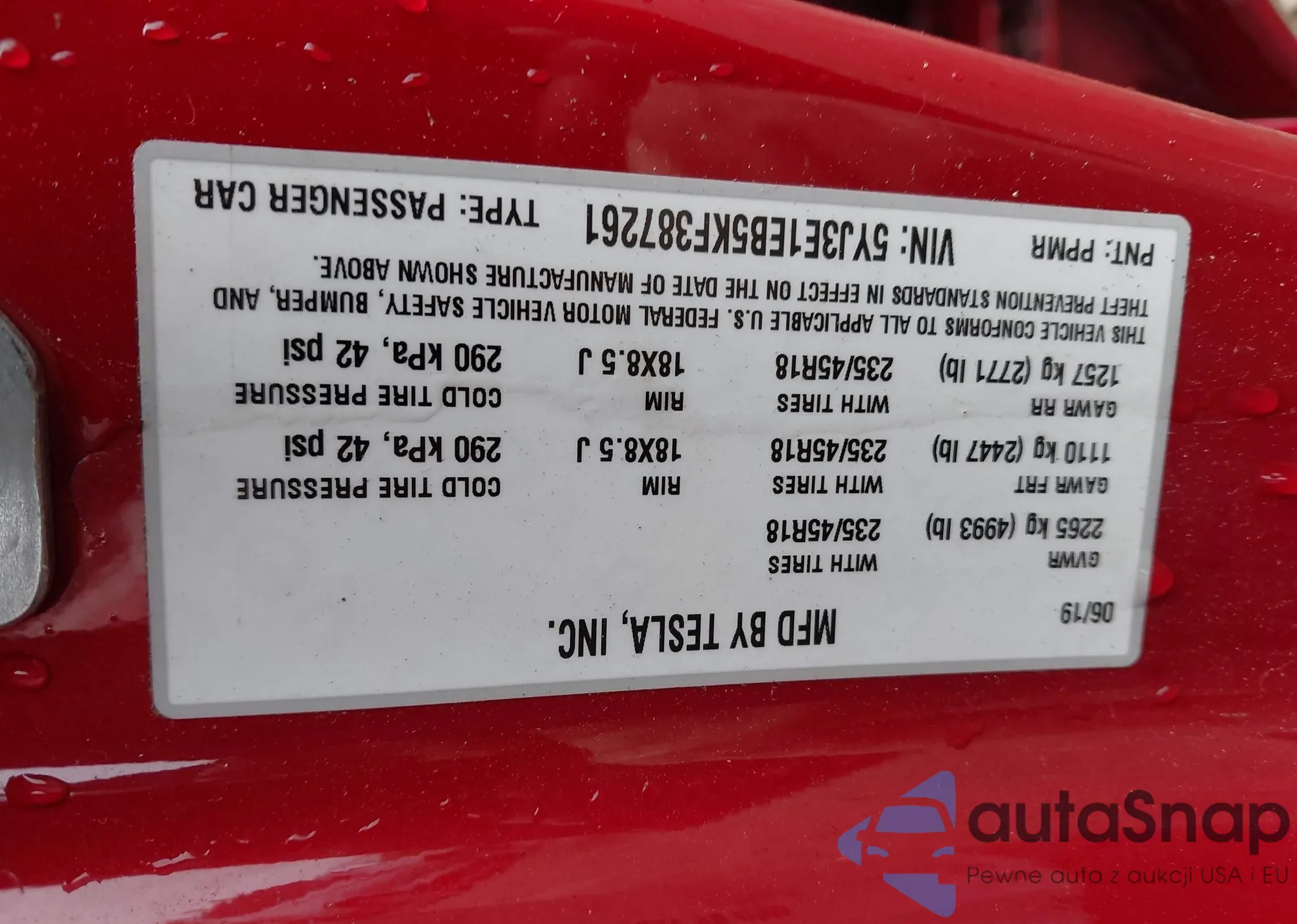 • VIN 5YJ3E1EB5KF387261