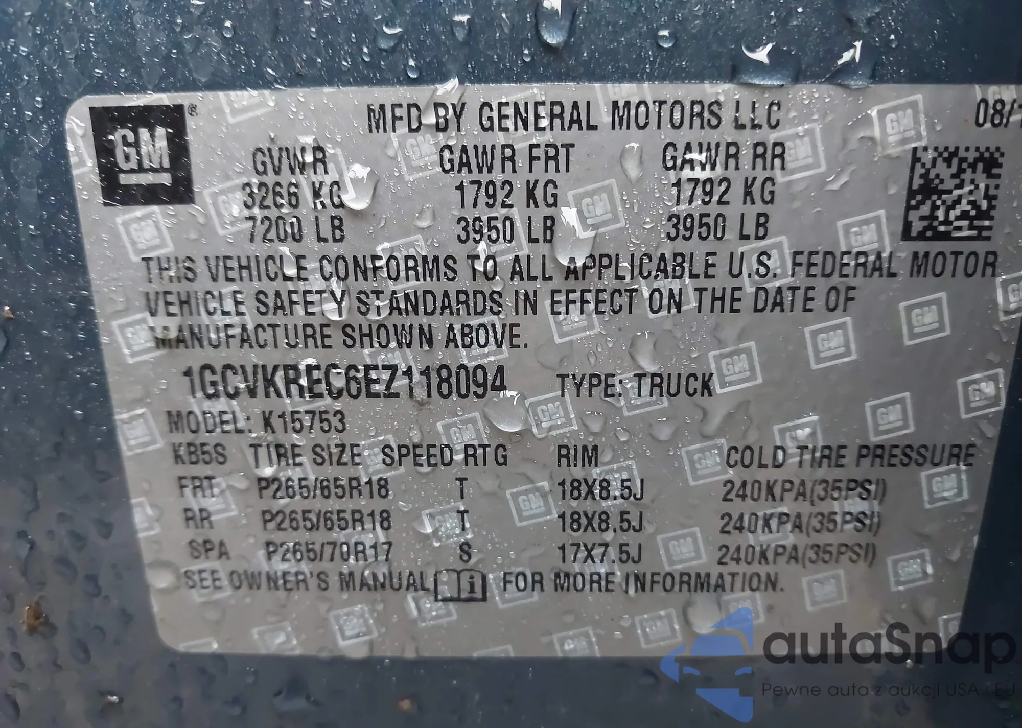 • VIN 1GCVKREC6EZ118094