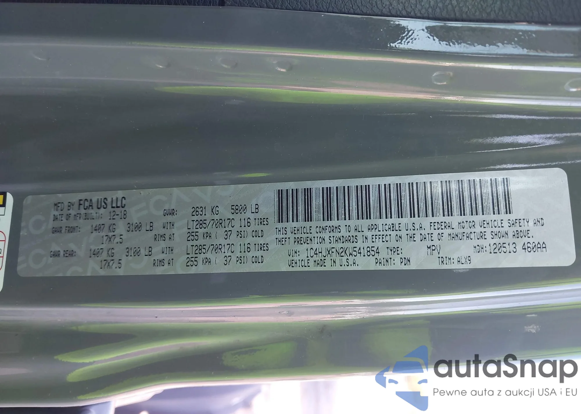 • VIN 1C4HJXFN2KW541854