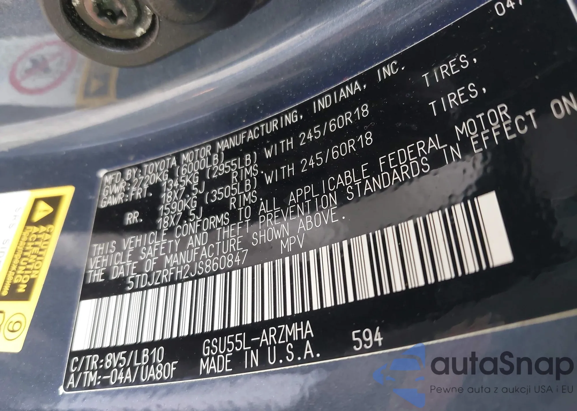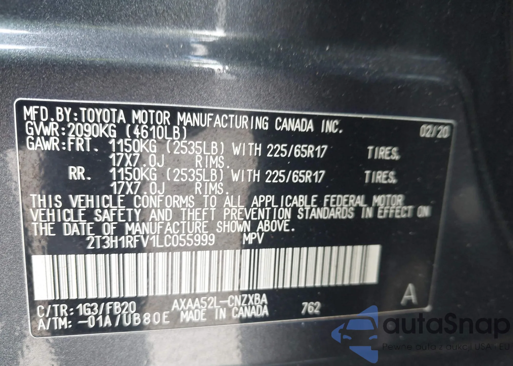 LOT: 43027828 VIN: 2T3H1RFV1LC055999