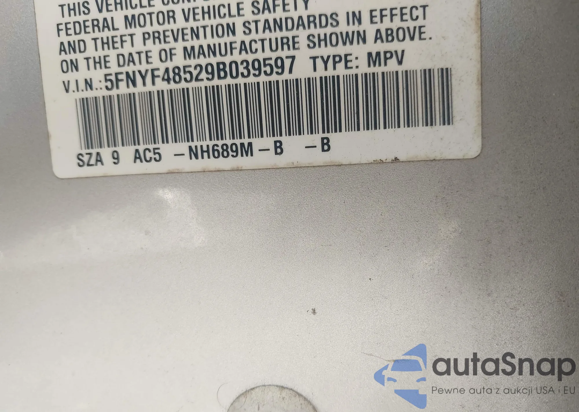 LOT: 43045147 VIN: 5FNYF48529B039597