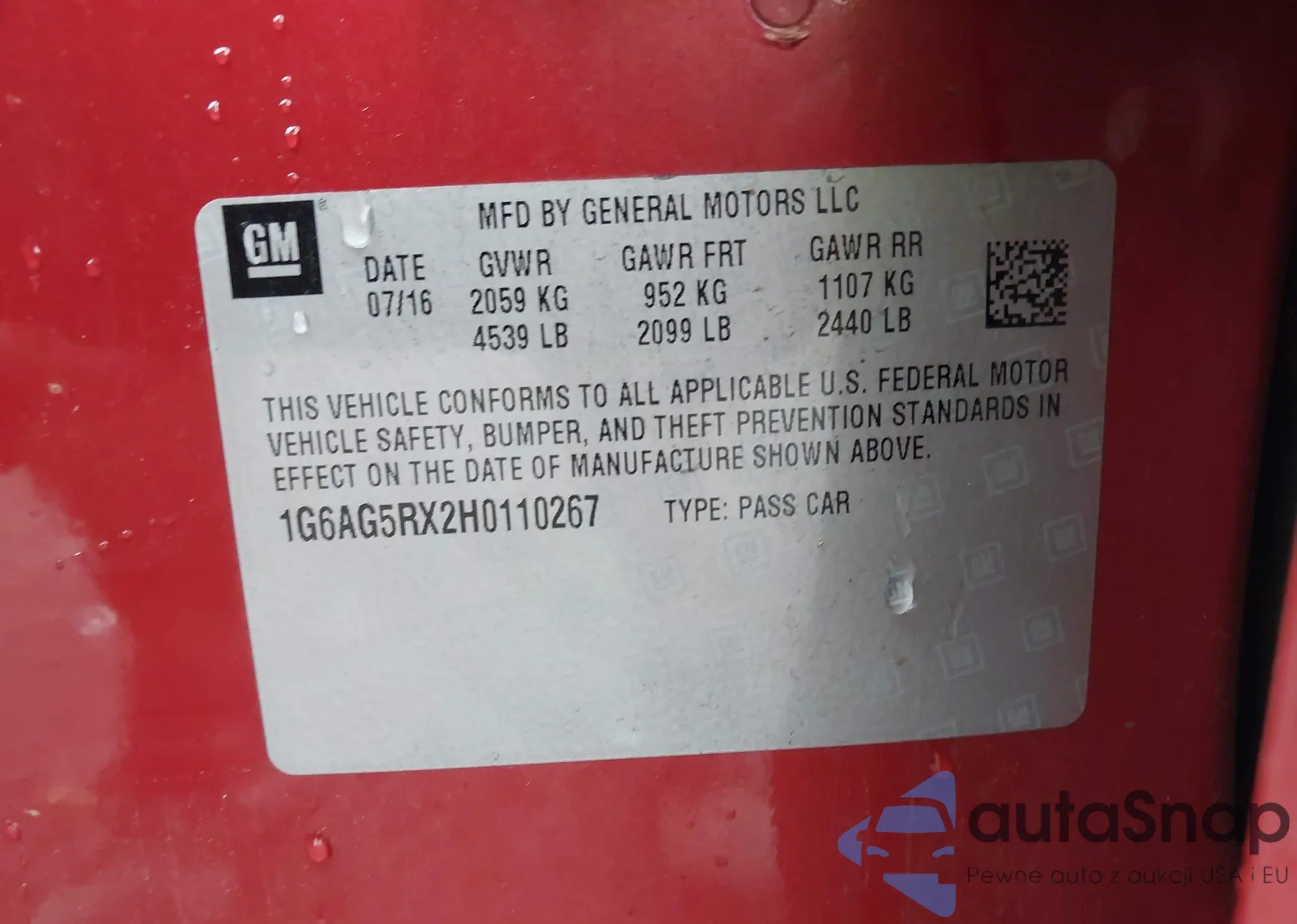 • VIN 1G6AG5RX2H0110267