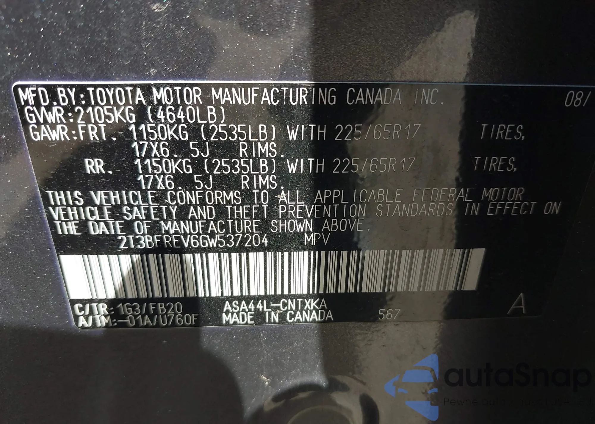 • VIN 2T3ZF4DV4BW104721