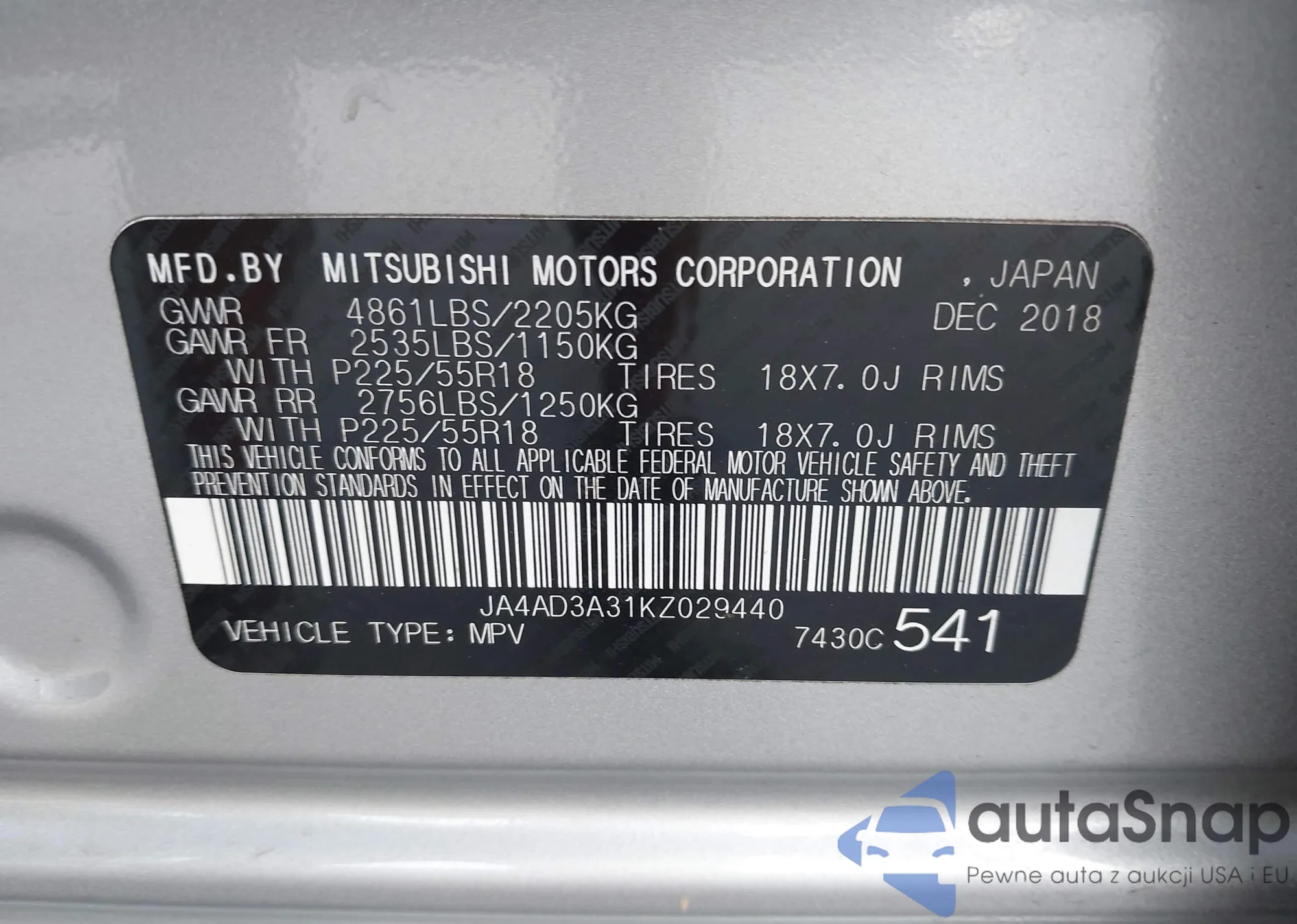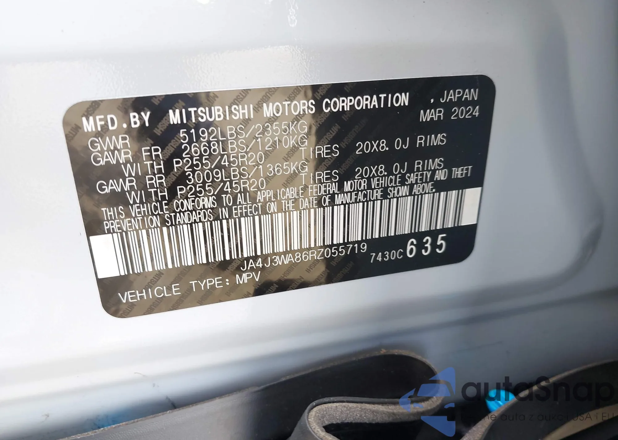 • VIN JA4J3WA86RZ055719