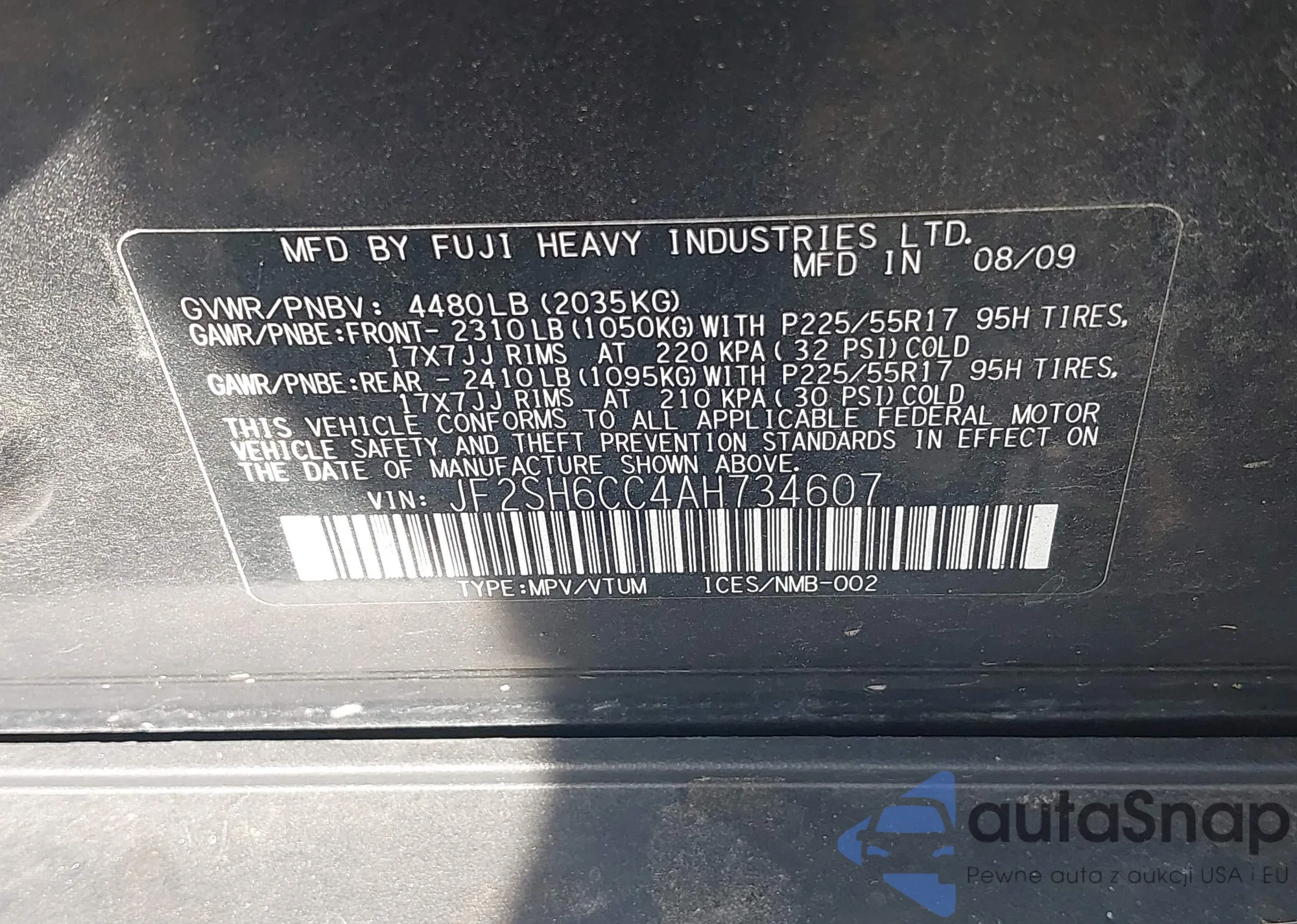 • VIN JF2SH6CC4AH734607