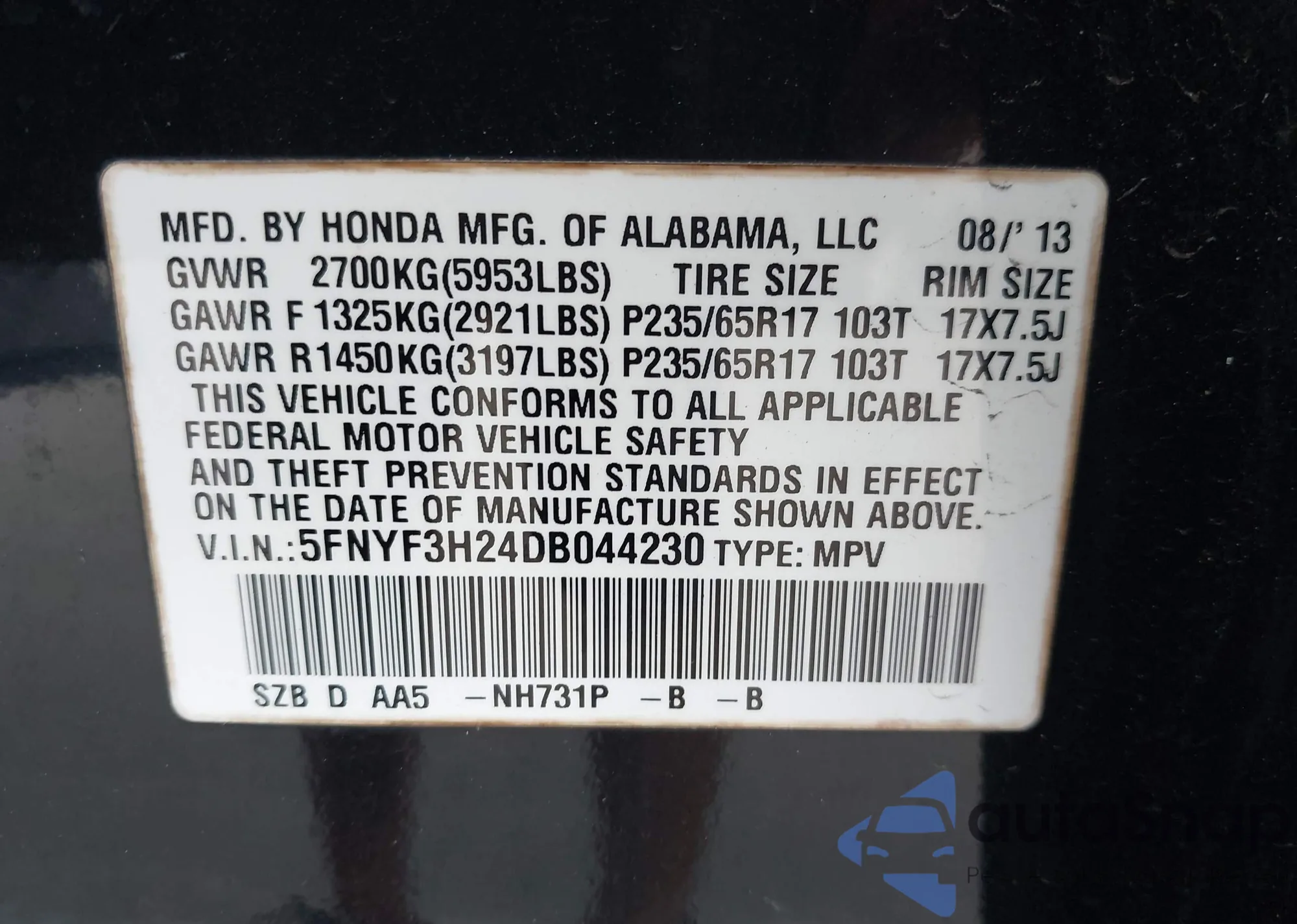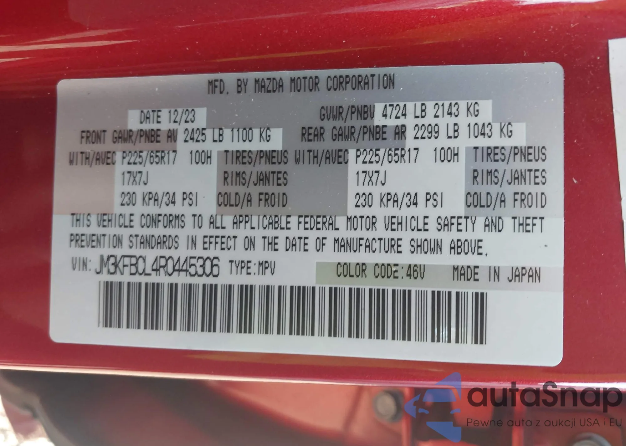 LOT: 43123930 VIN: JM3KFBCL4R0445306