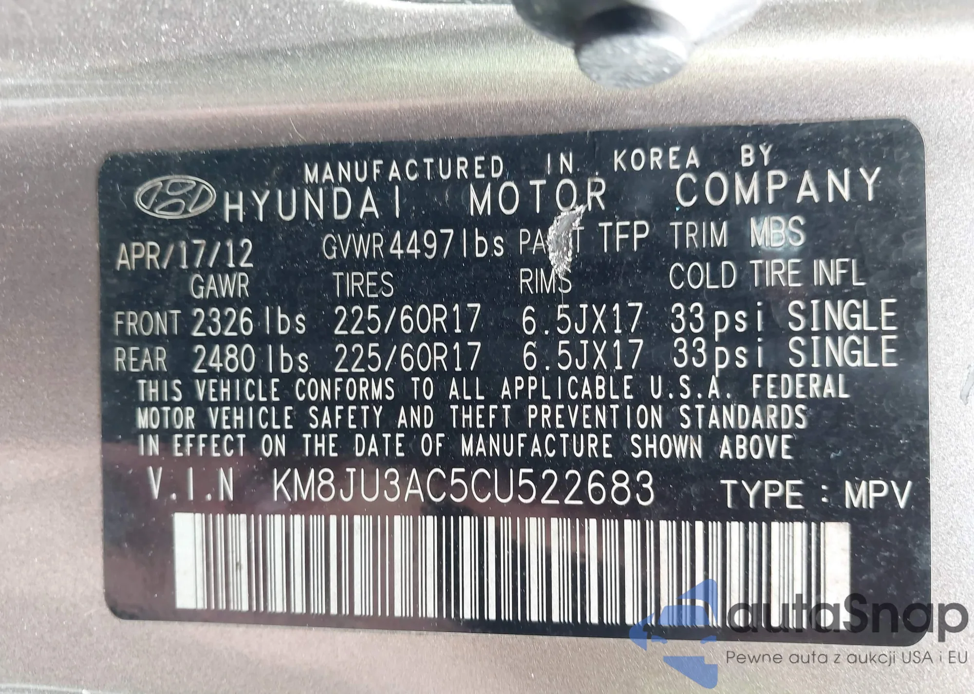 • VIN KM8JU3AC5CU522683