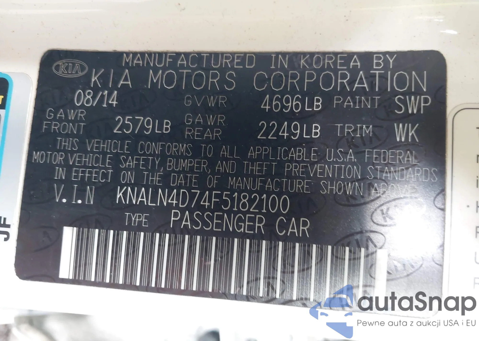 LOT: 43147706 VIN: KNALN4D74F5182100