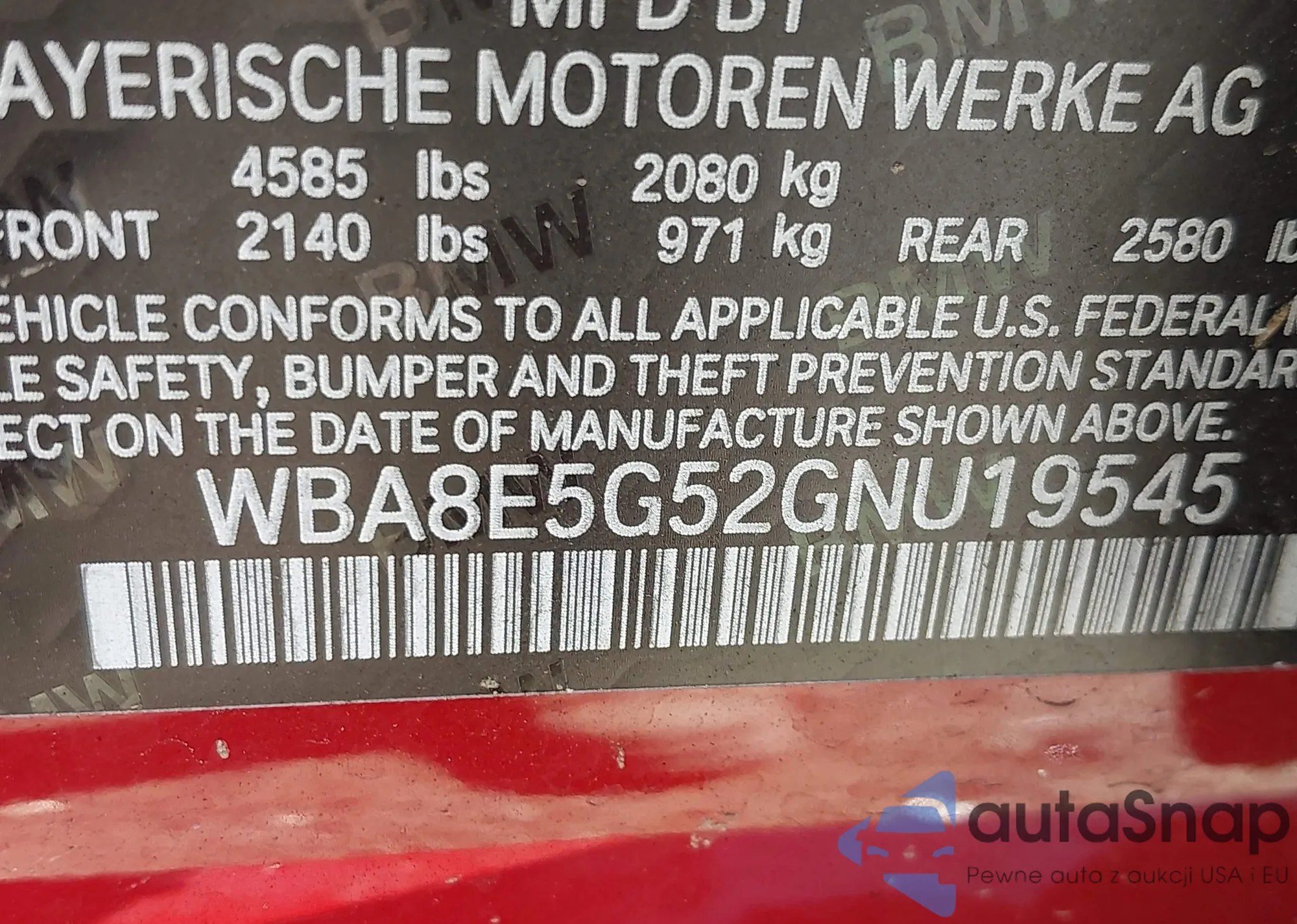 LOT: 43127098 VIN: WBAXG5C51DDY37656