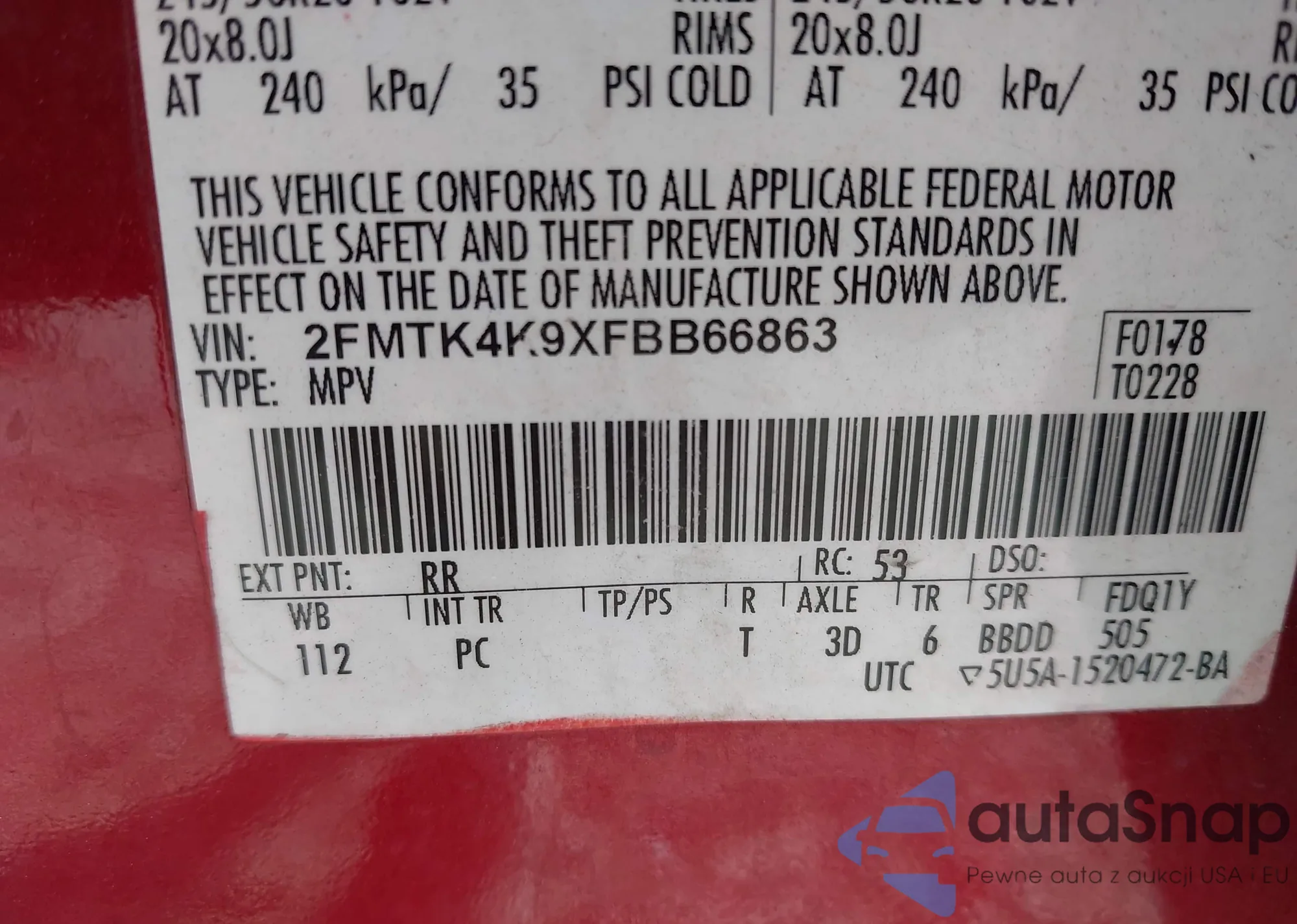 • VIN 2FMTK4K9XFBB66863