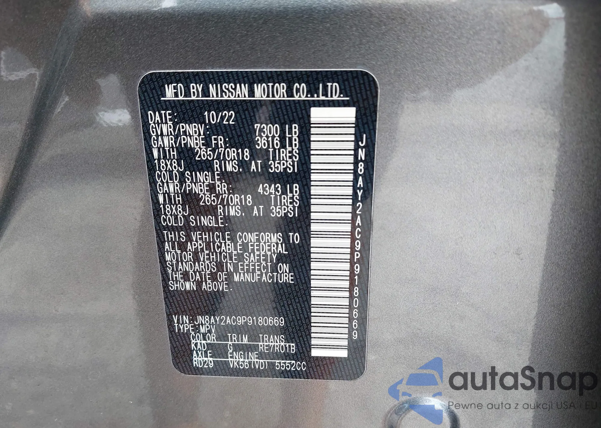 • VIN JN8AS5MV1AW144905