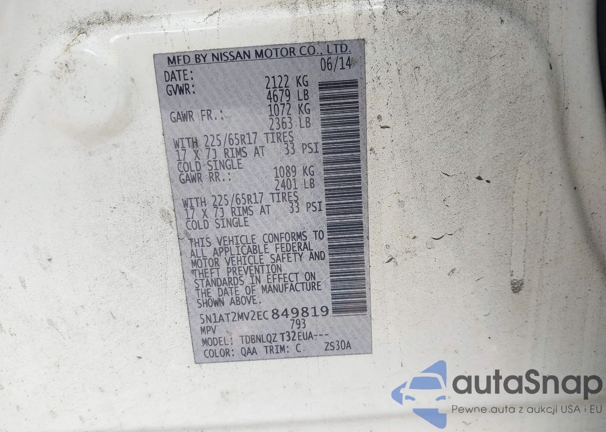 LOT: 43140669 VIN: JN8AS5MV1AW144905