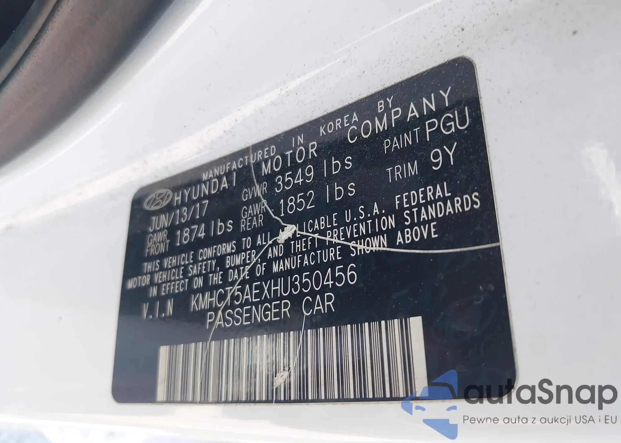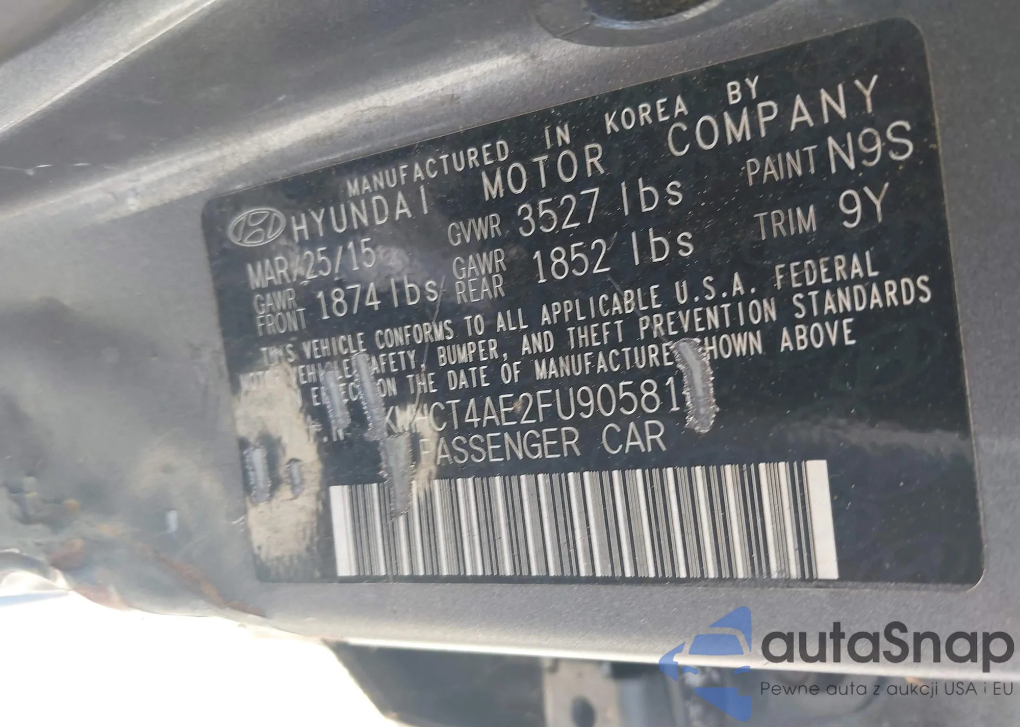 LOT: 43132617 VIN: KMHCT4AE2FU905813