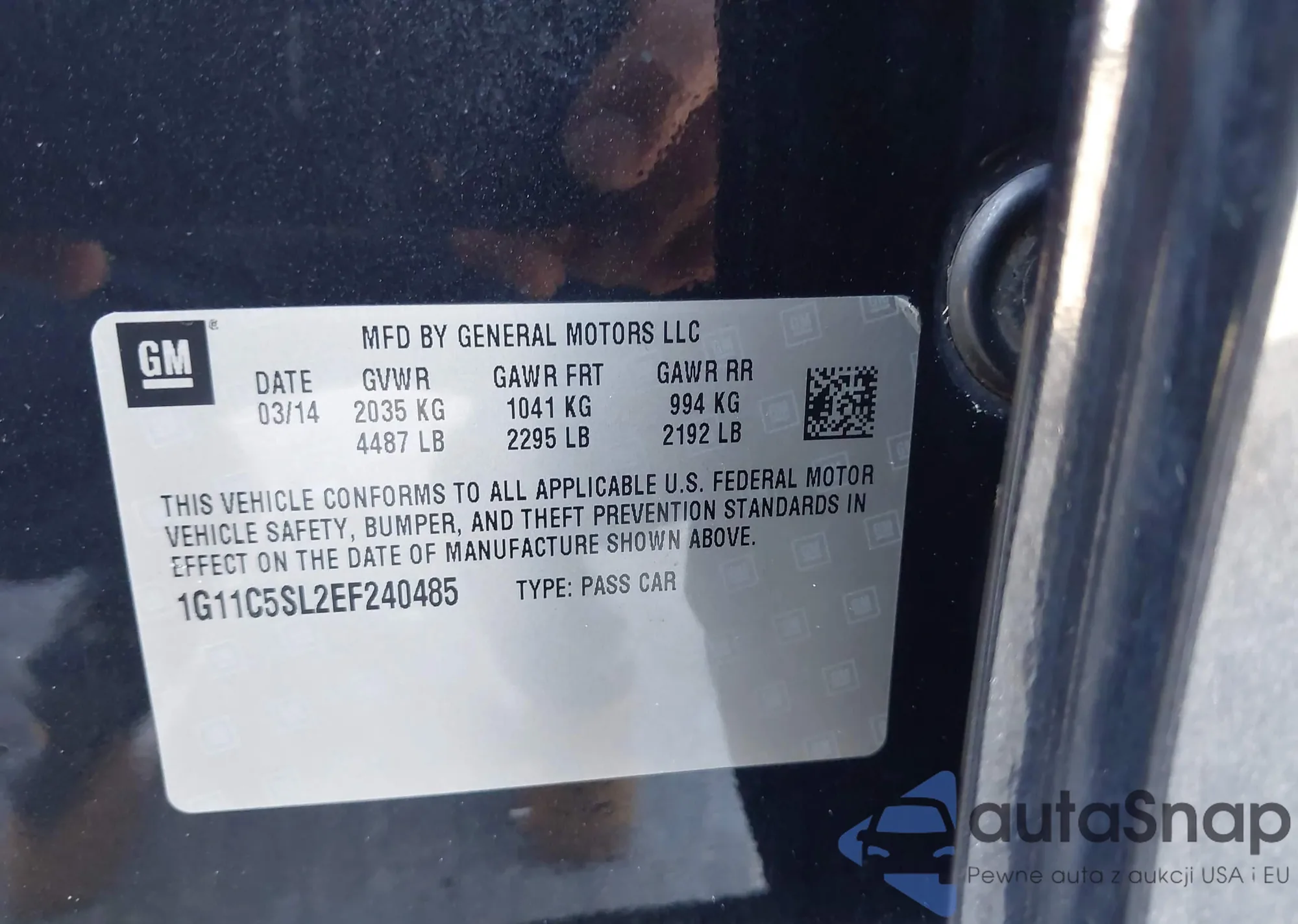 LOT: 43104213 VIN: 1G11C5SL2EF240485