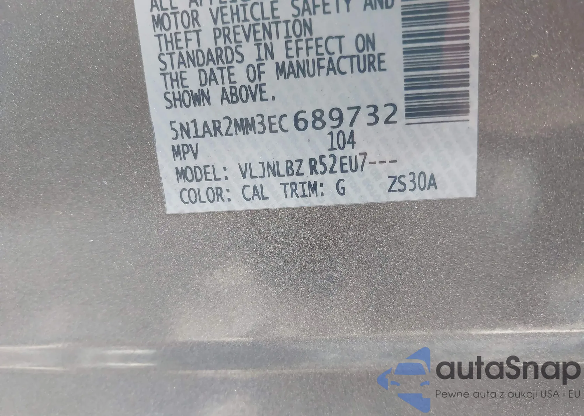 LOT: 43203231 VIN: 5N1AR2MM3EC689732