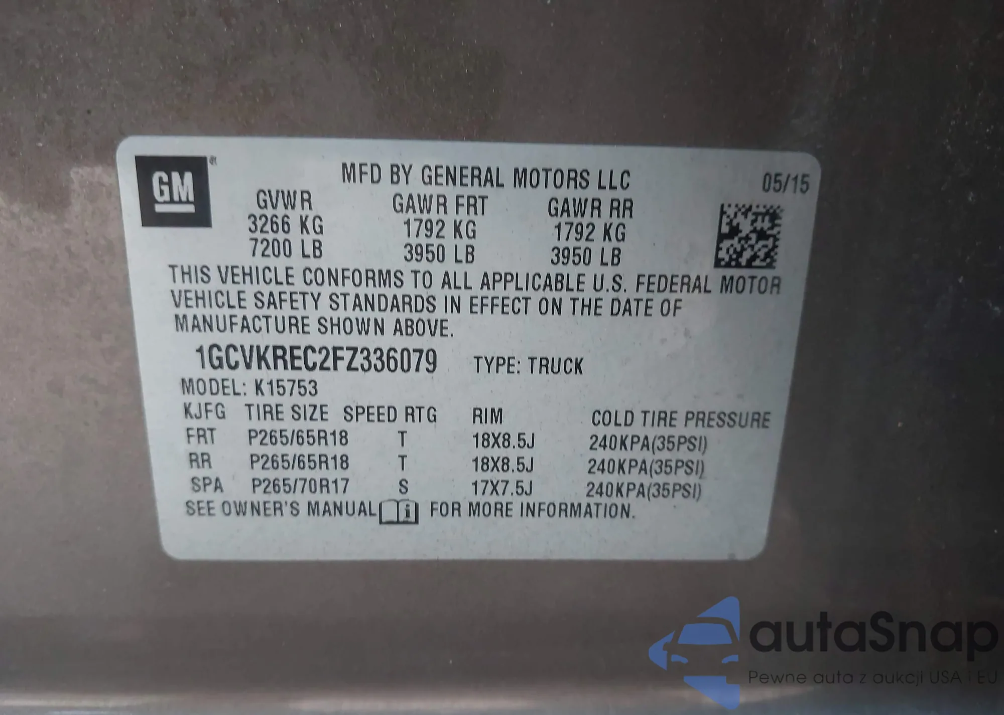• VIN 1GCVKREC2FZ336079
