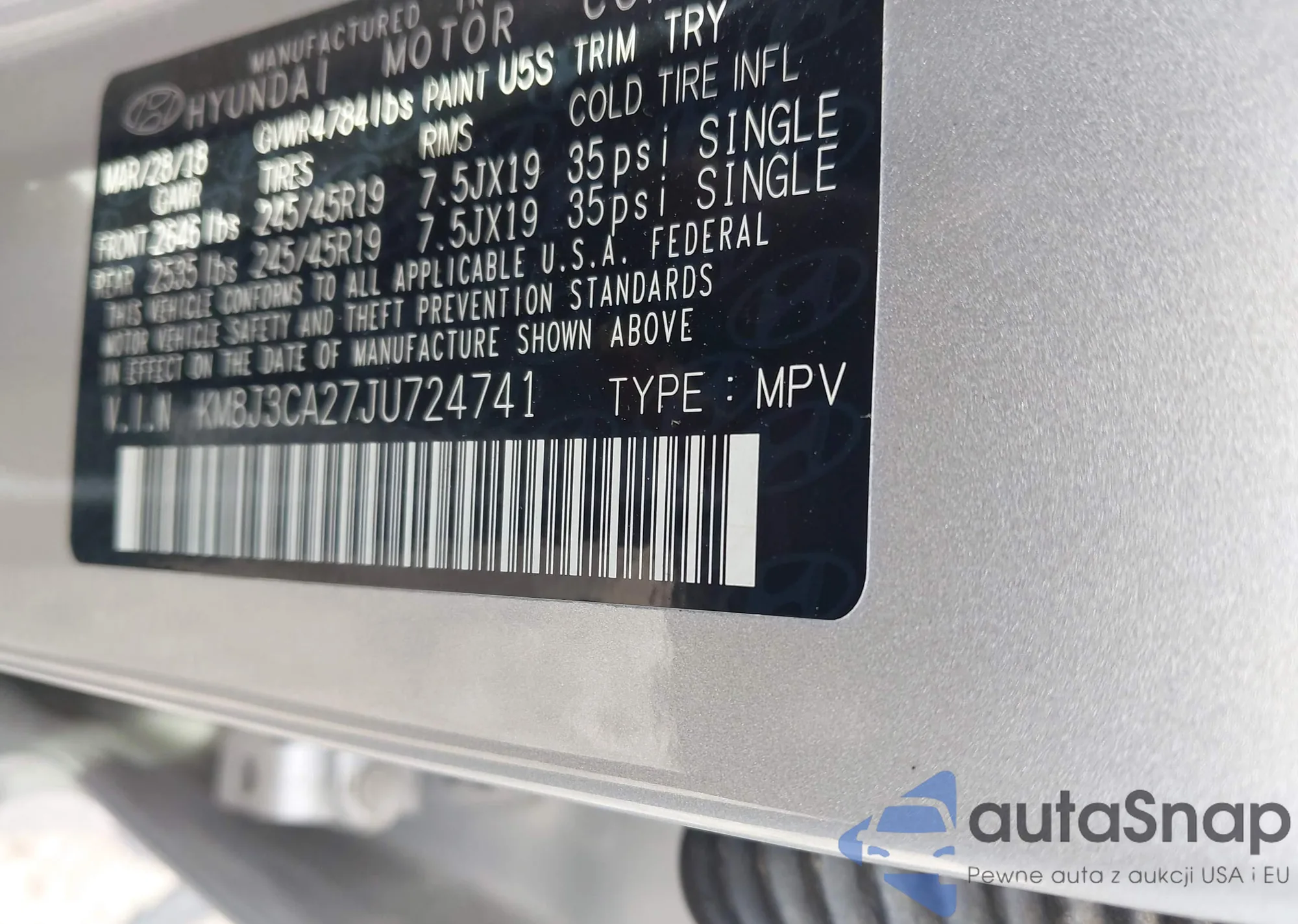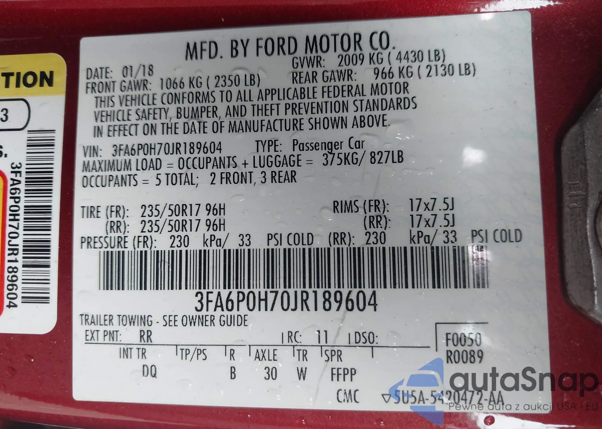• VIN 4T1B11HK5JU045877