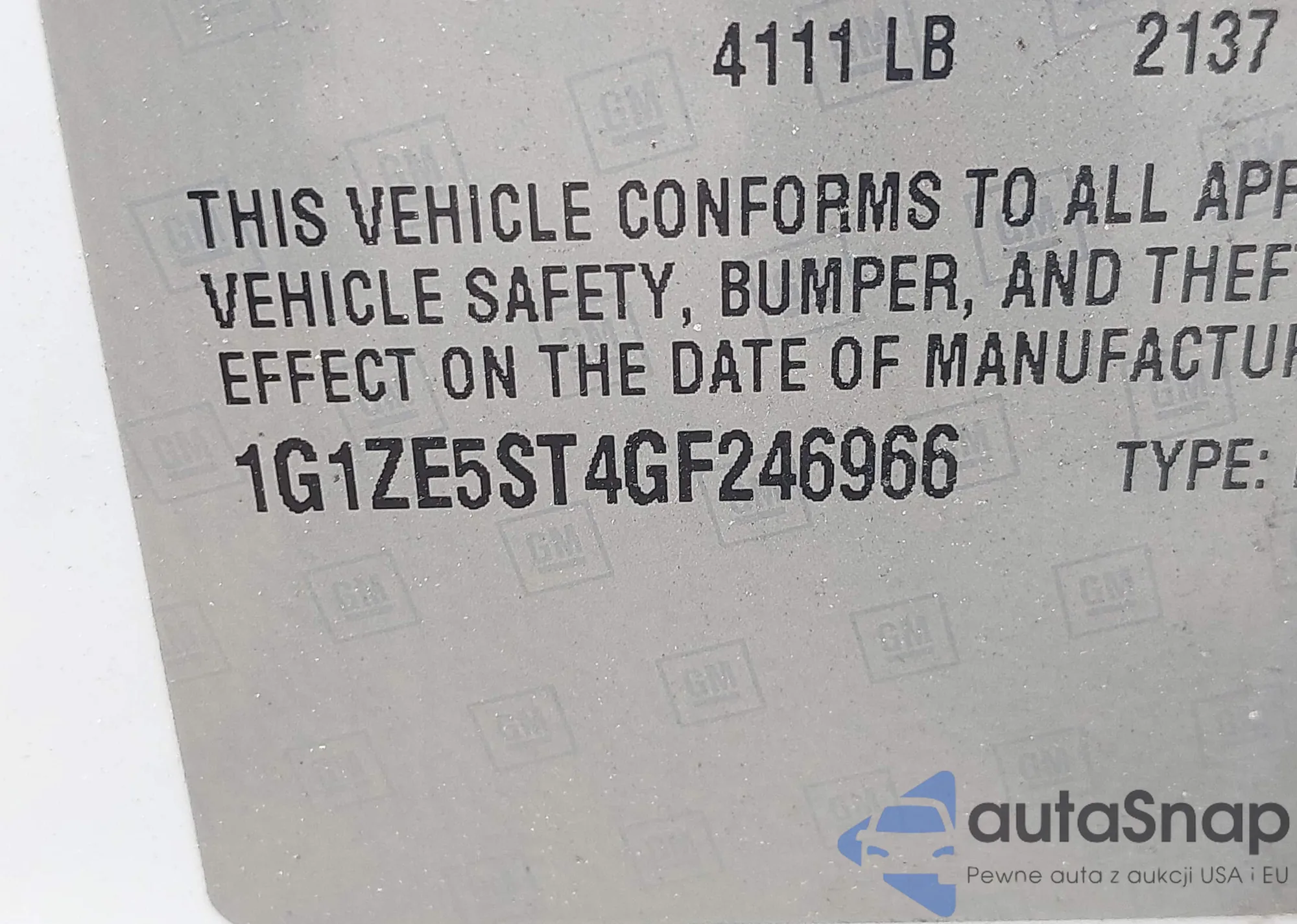 LOT: 43043757 VIN: 1G1PE5SB9G7144023
