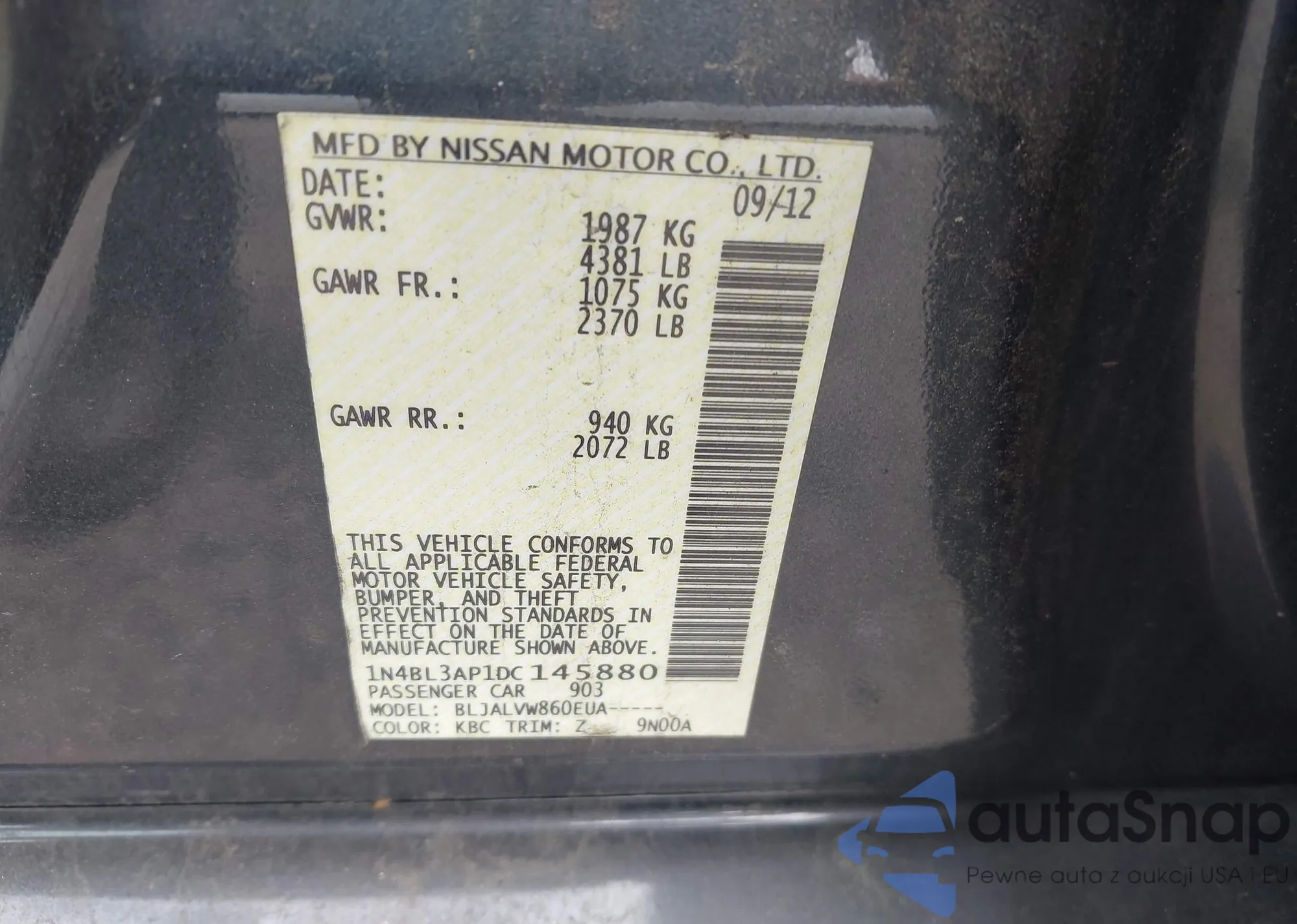• VIN 1N4BL3AP1DC145880