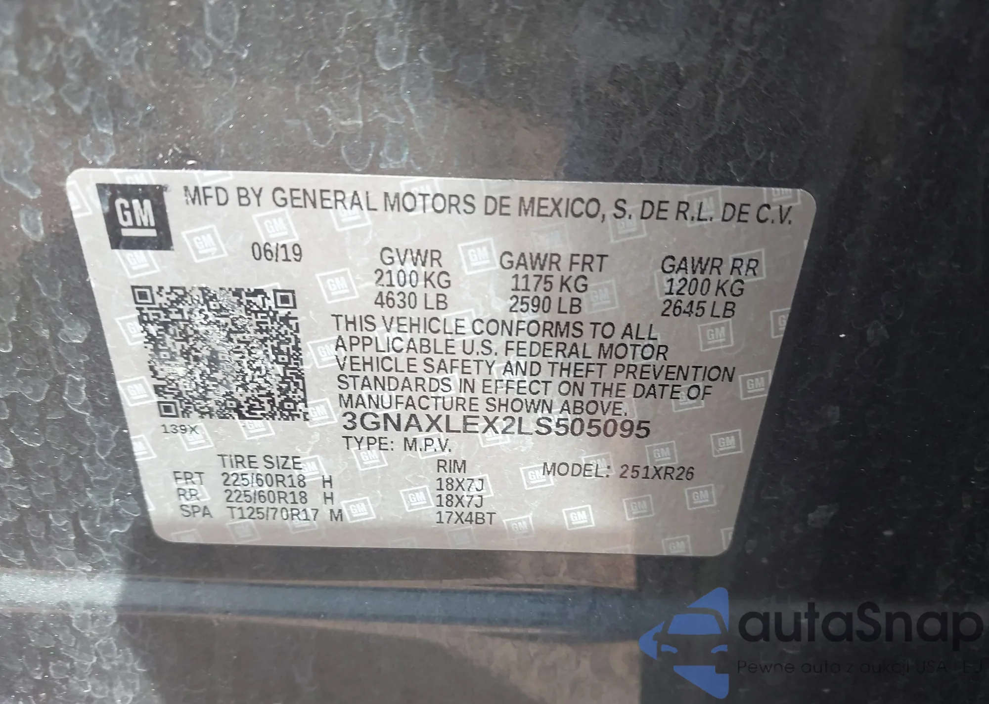 • VIN 3GNAXLEX2LS505095