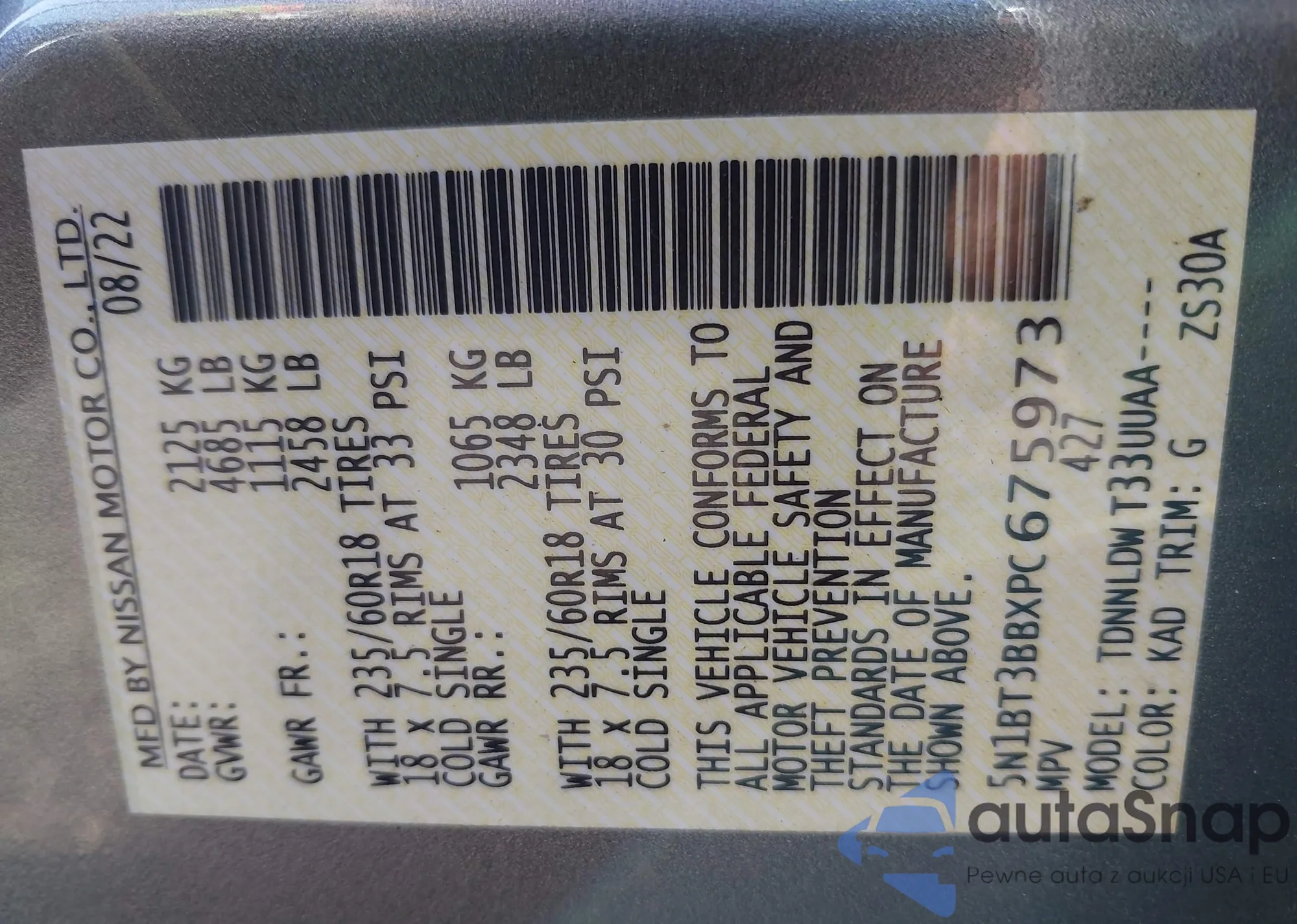 • VIN 3VVCB7AX3RM077940