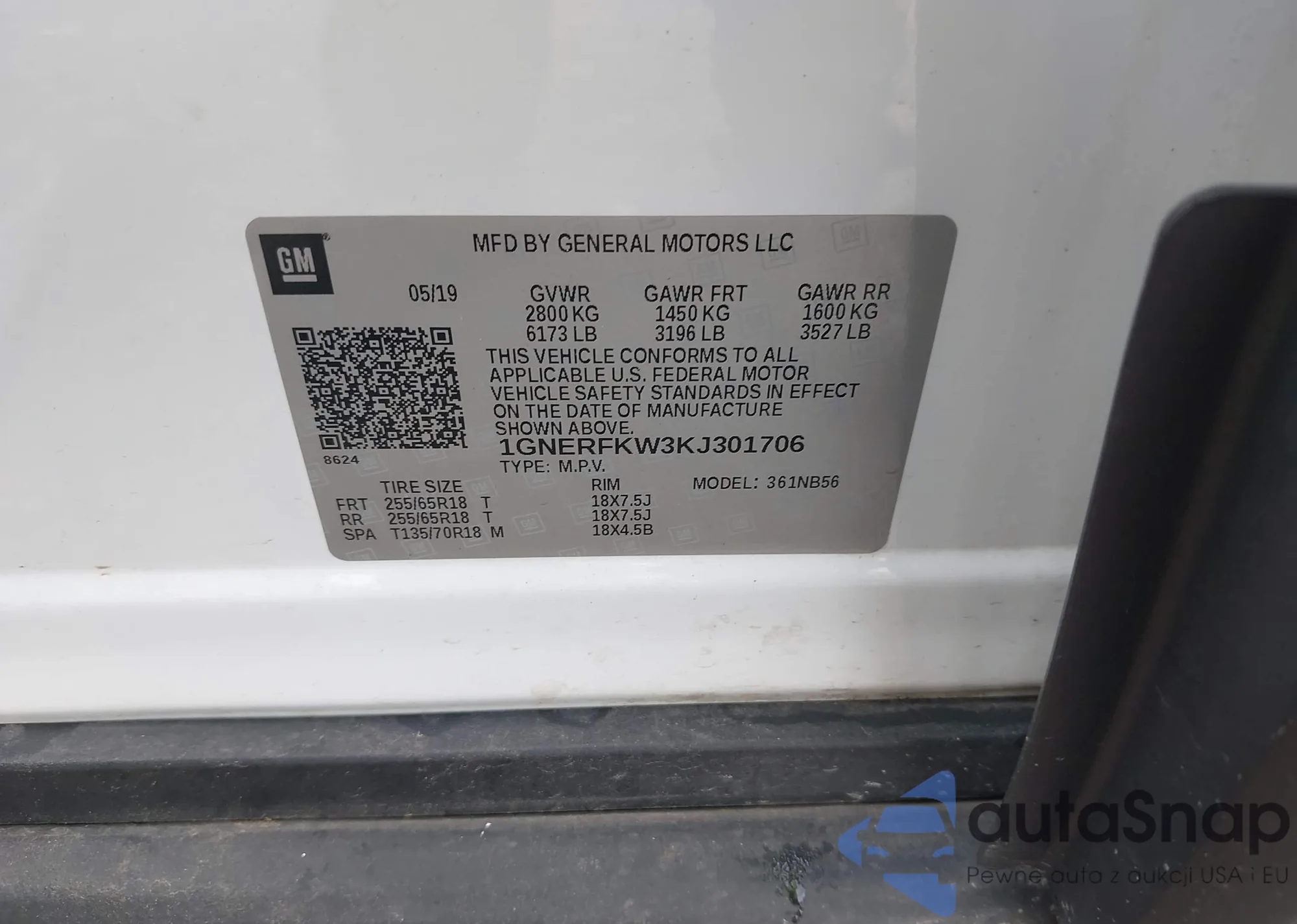 • VIN 1GNERFKW3KJ301706