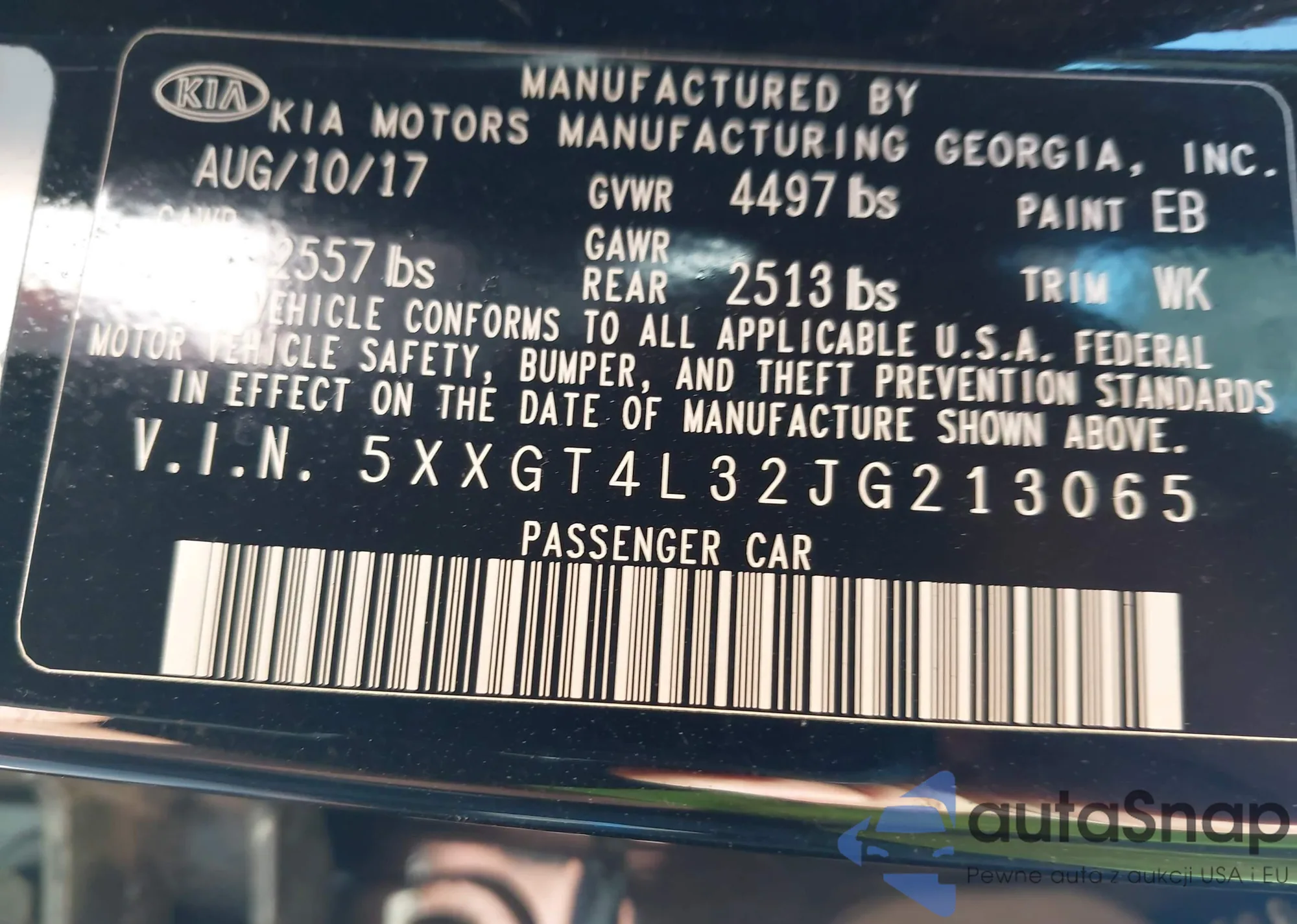• VIN 5XXGT4L32JG213065