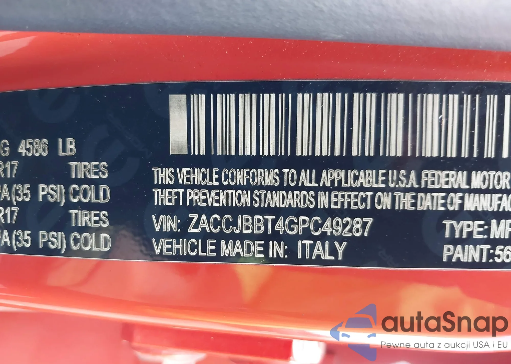 LOT: 43235141 VIN: ZACCJBBT4GPC49287
