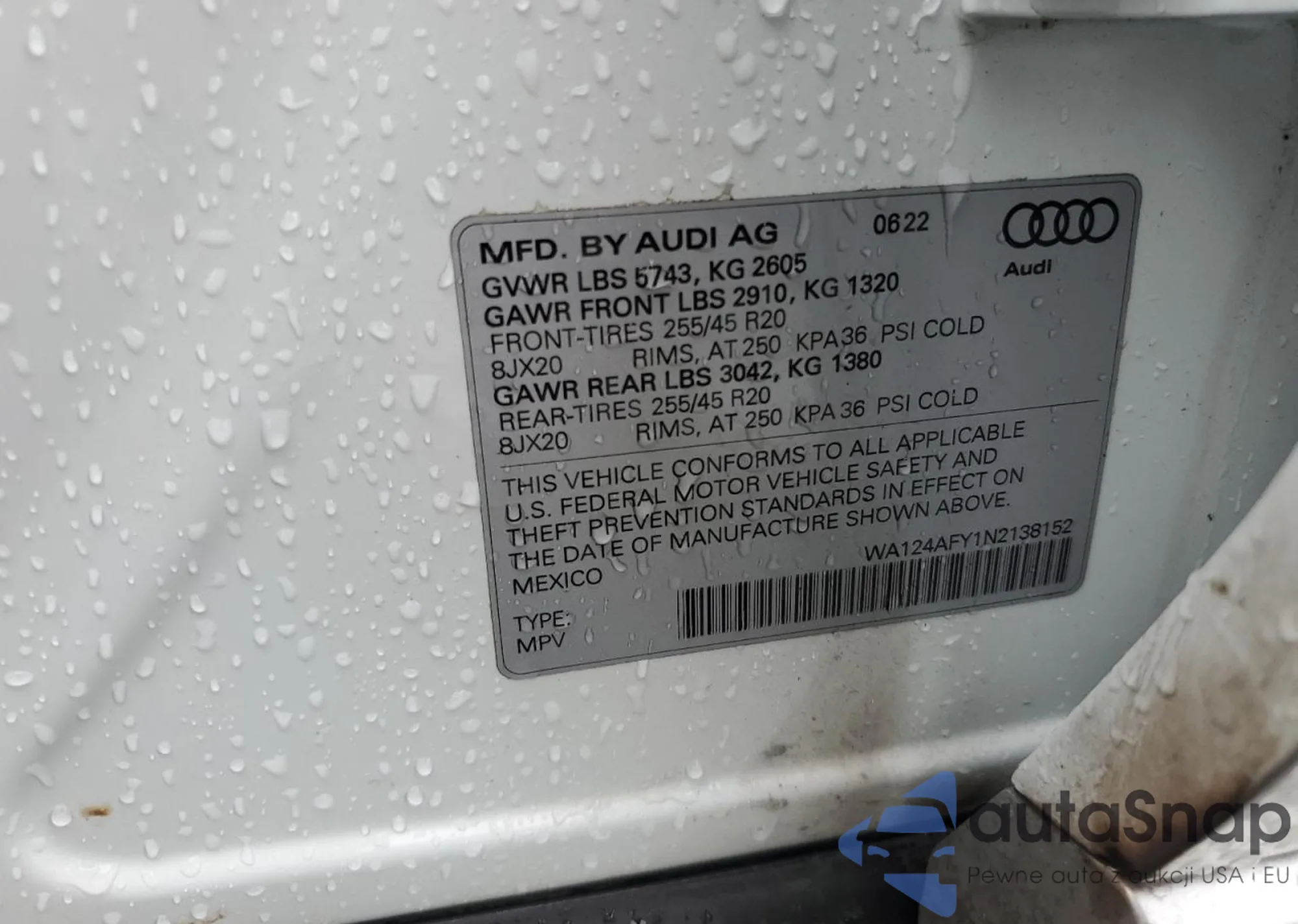 • VIN WA124AFY1N2138152
