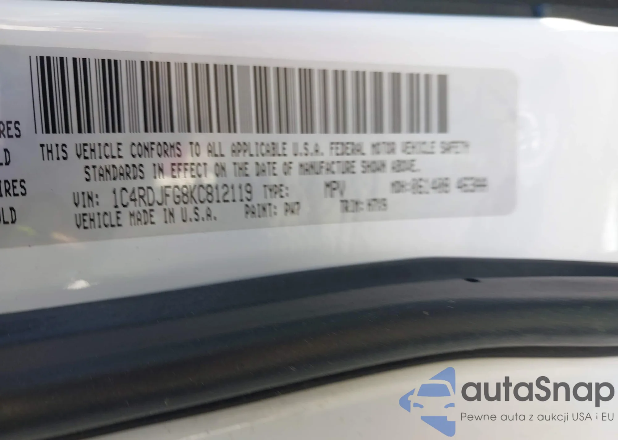 • VIN 1C4RDJFG8KC812119