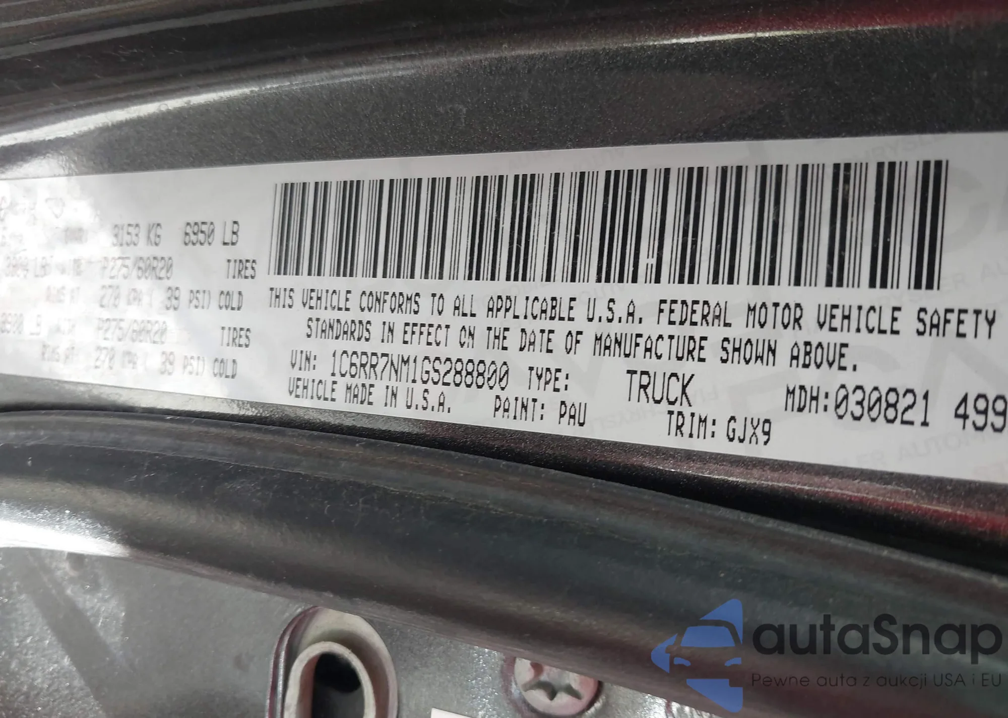 • VIN 1C6RR7NT3GS210977