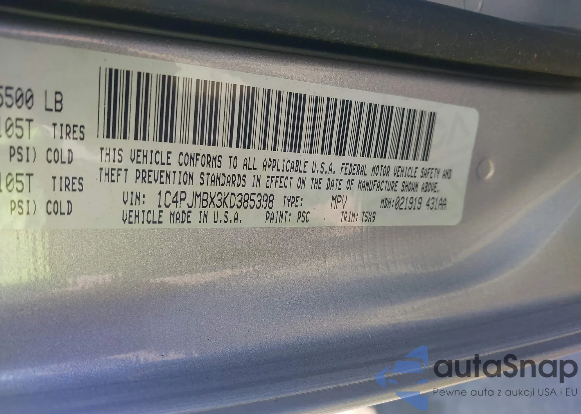 • VIN 1C4PJMBX3KD385398