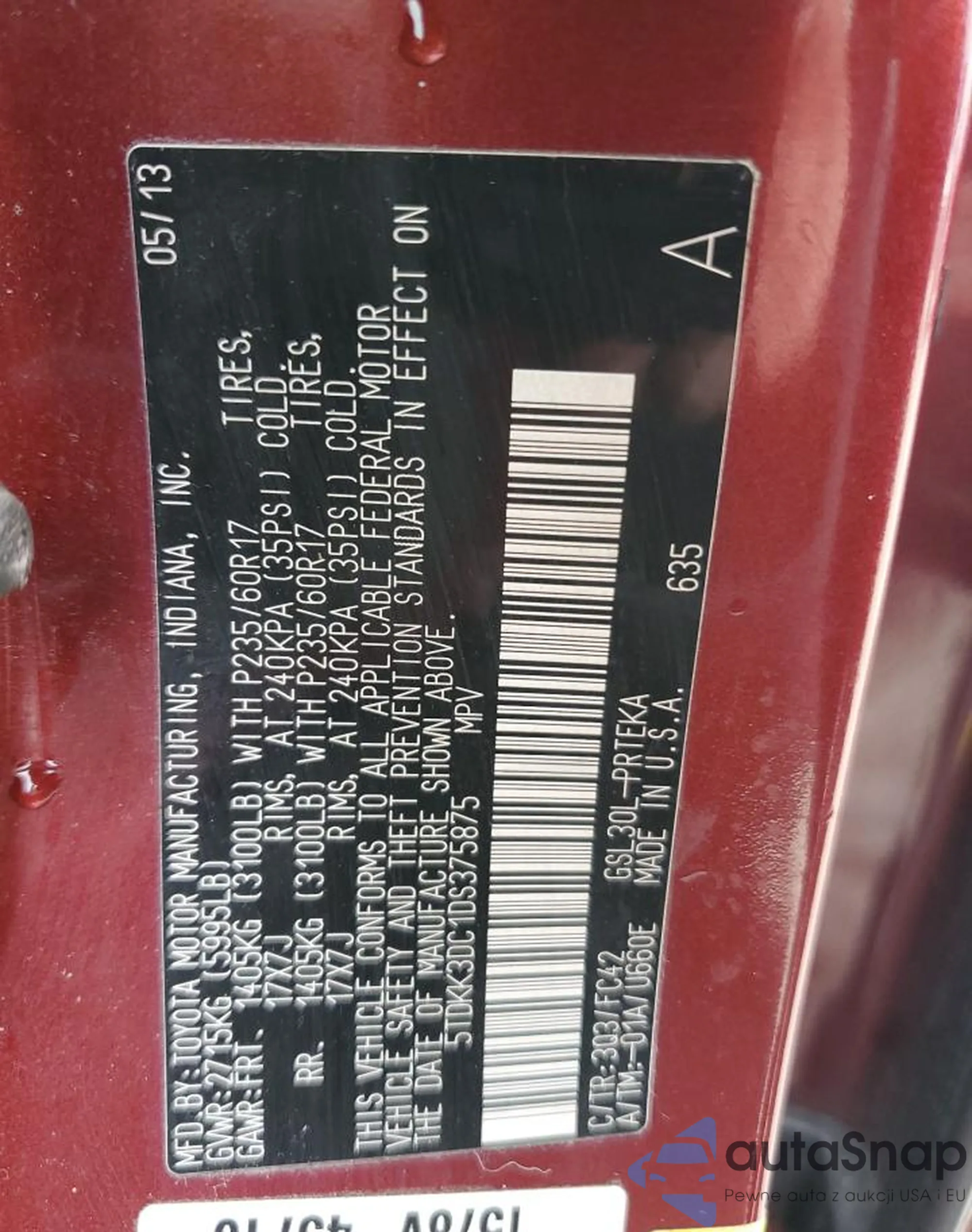 LOT: 81142625 VIN: 5TDKK3DC1DS375875