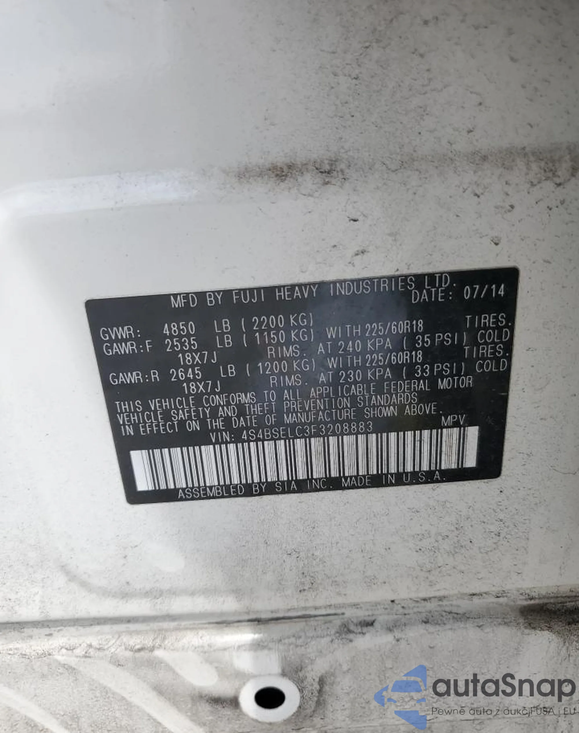 LOT: 69660785 VIN: 4S4BSELC3F3208883