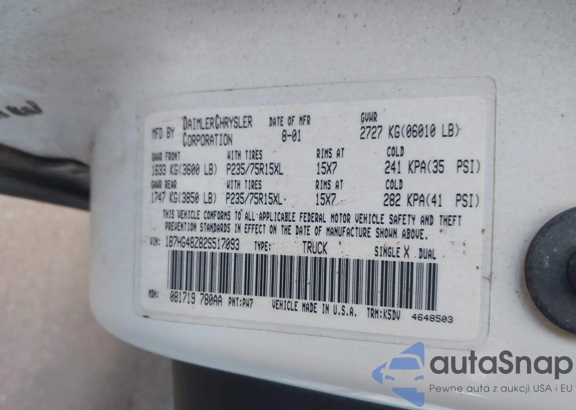 LOT: 69583475 VIN: J8F93EA130915