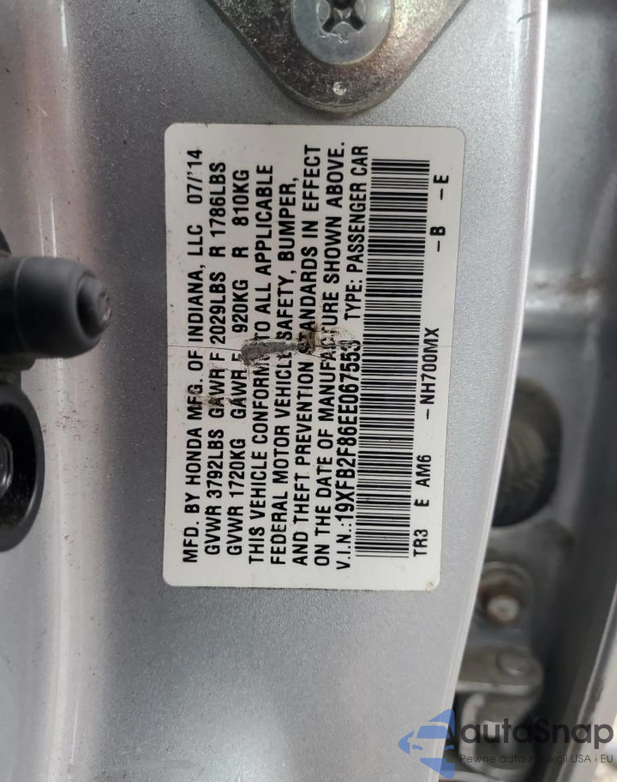 • VIN 19XFB2F86EE067553