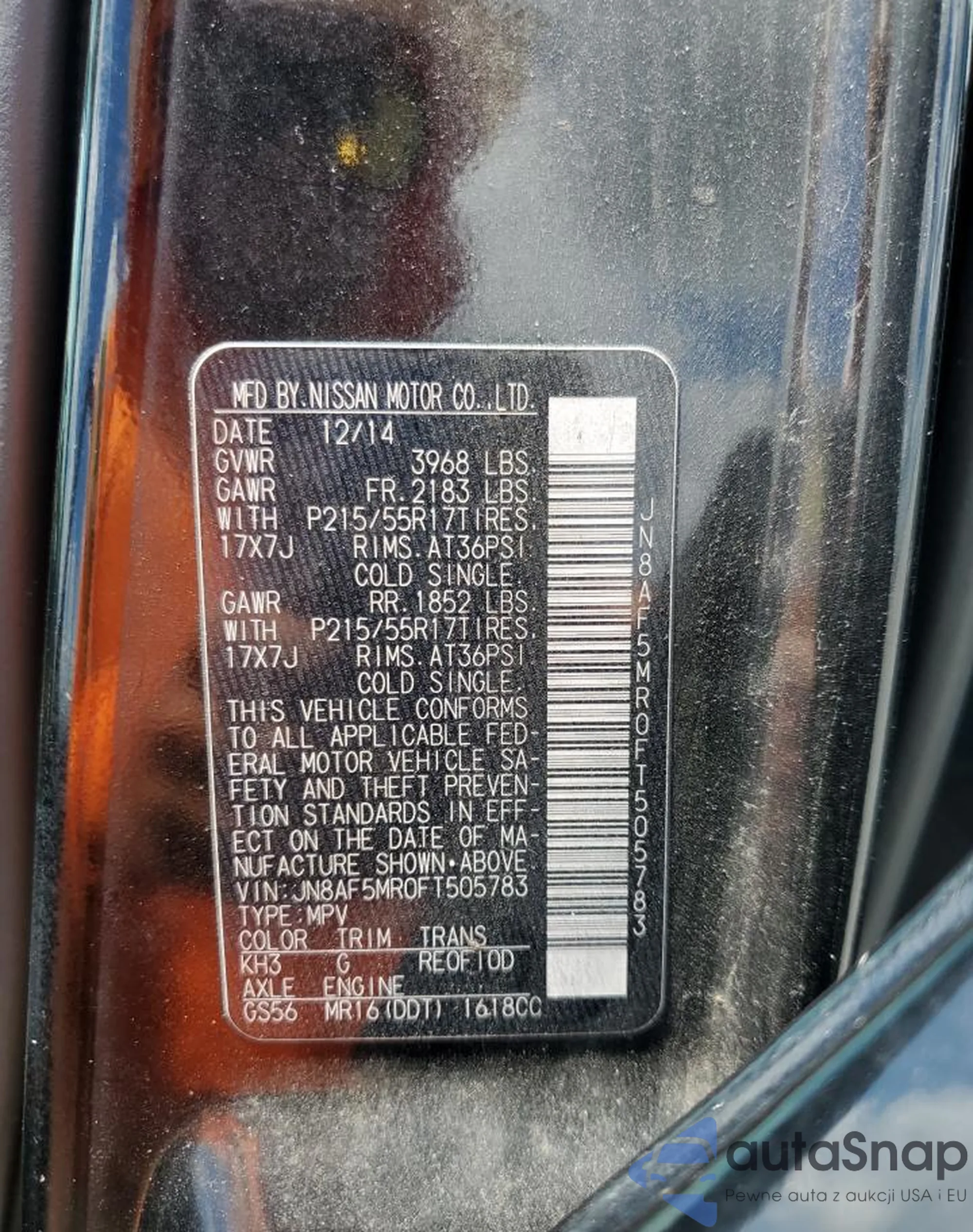 LOT: 69223565 VIN: JN8AF5MR0FT505783