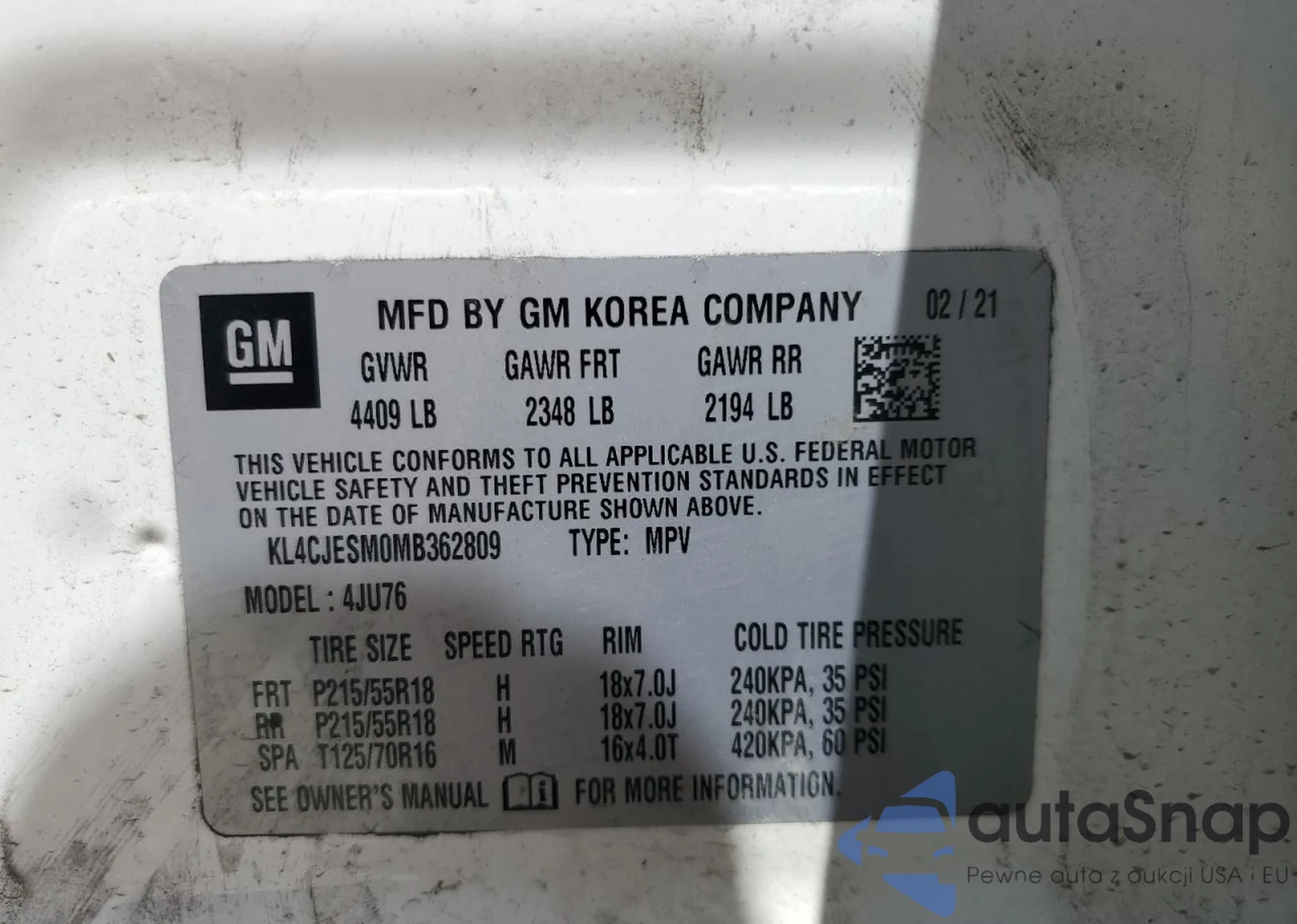 • VIN KL4CJESM0MB362809