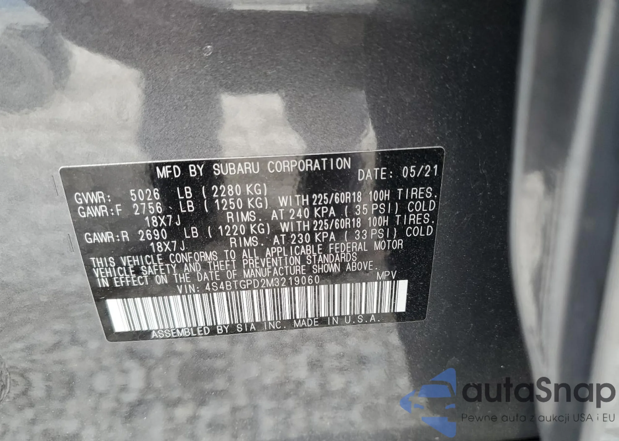 LOT: 81590065 VIN: 4S4BTGPD2M3219060