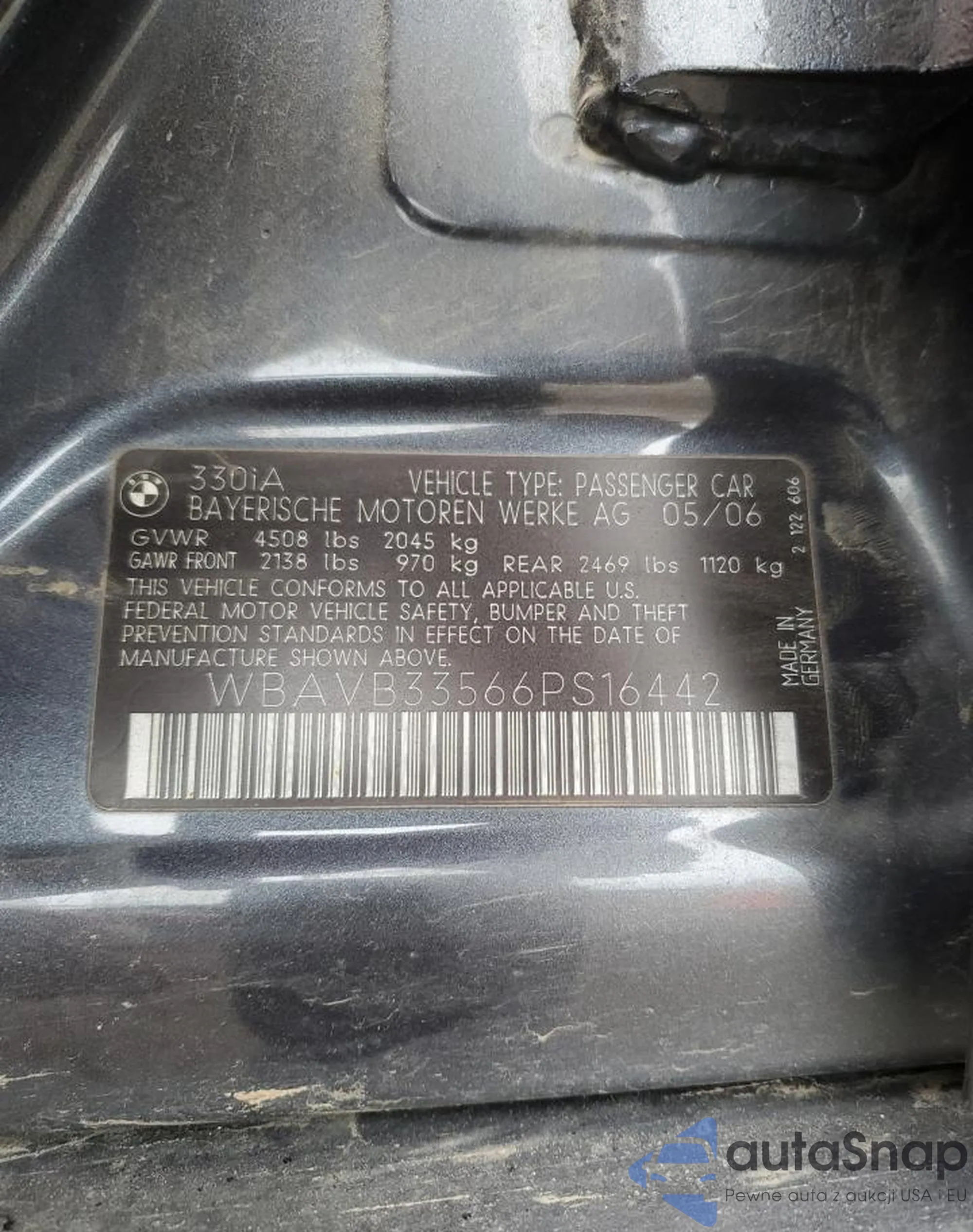 • VIN WBA6D2C52GGT65876